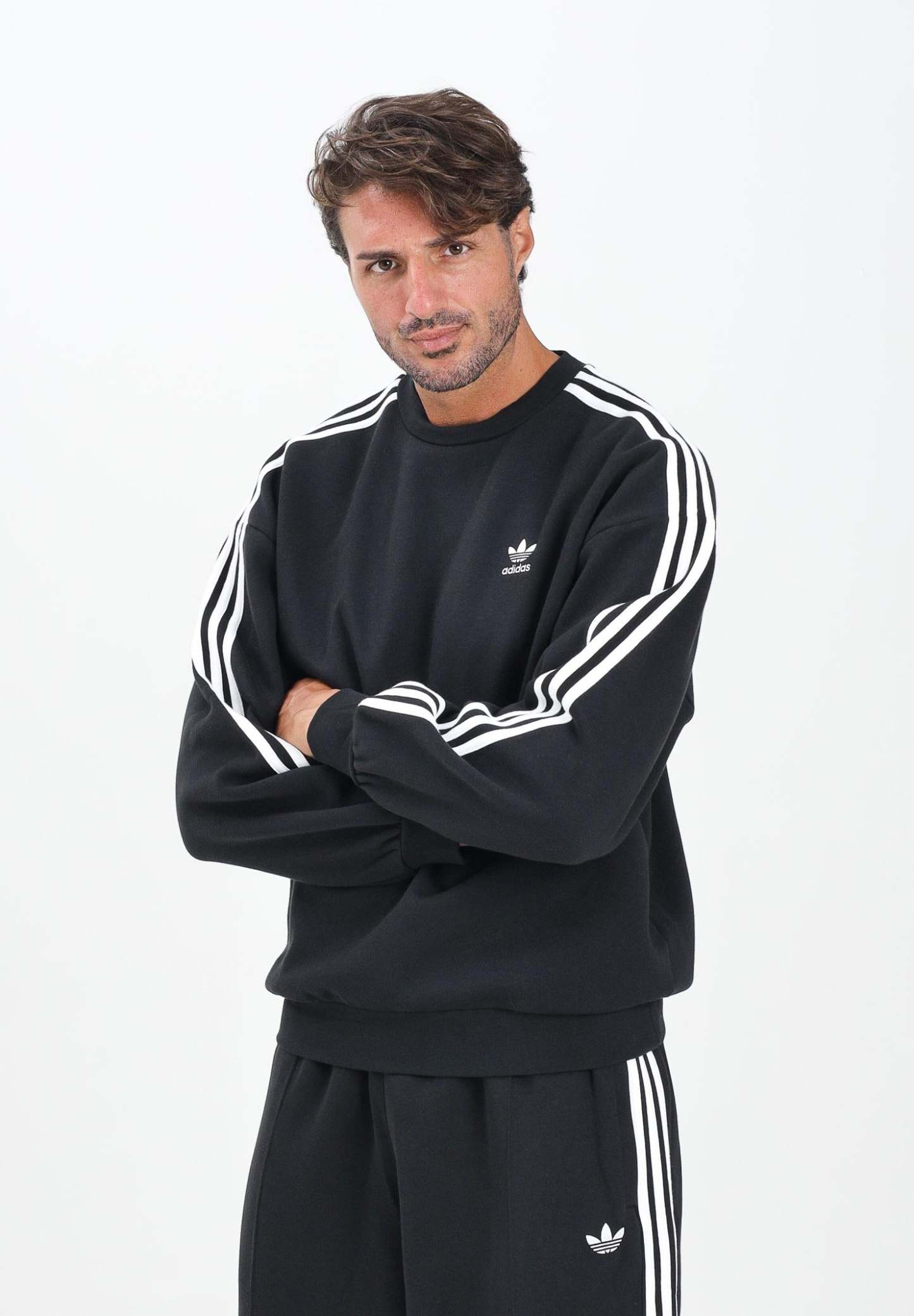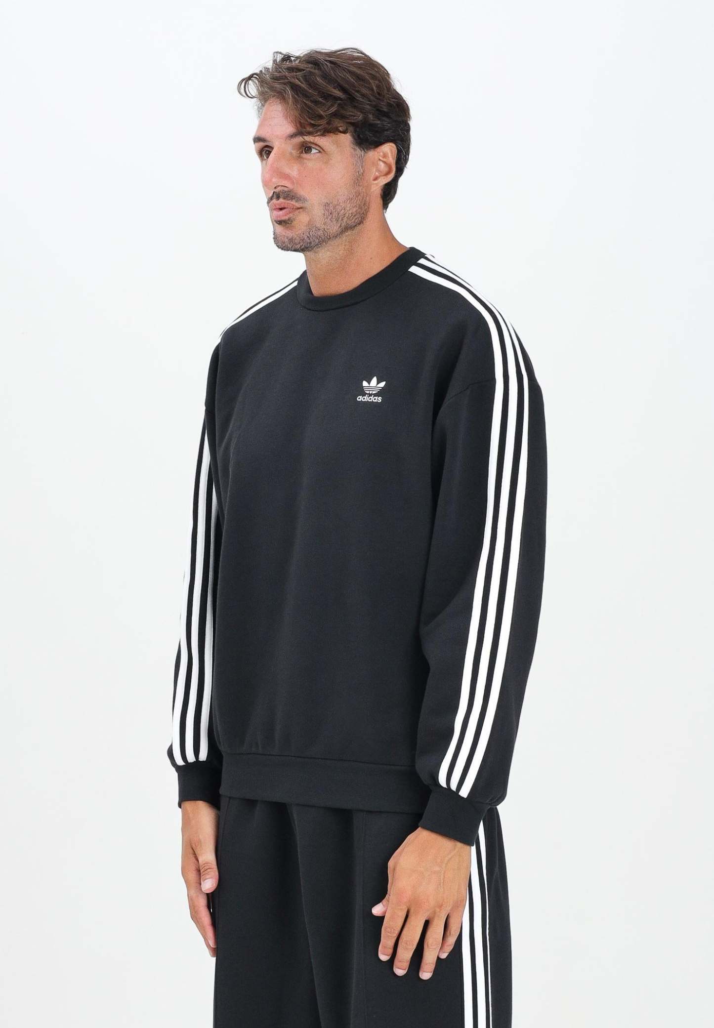 Adithtdas men's black Adicolor Oversized Crew sweatshirt. Spice up your everyday style with this Adithtdas sweatshirt. The oversized fit and ribbed details add a contemporary touch, while the fleece construction is pure softness. The contrasting 3-Stripes and Trefoil logo connect you to the brand's legendary sporty DNA. The model is wearing a size L and is 190 cm tall. We recommend washing and ironing at medium heat. Fall/Winter season.