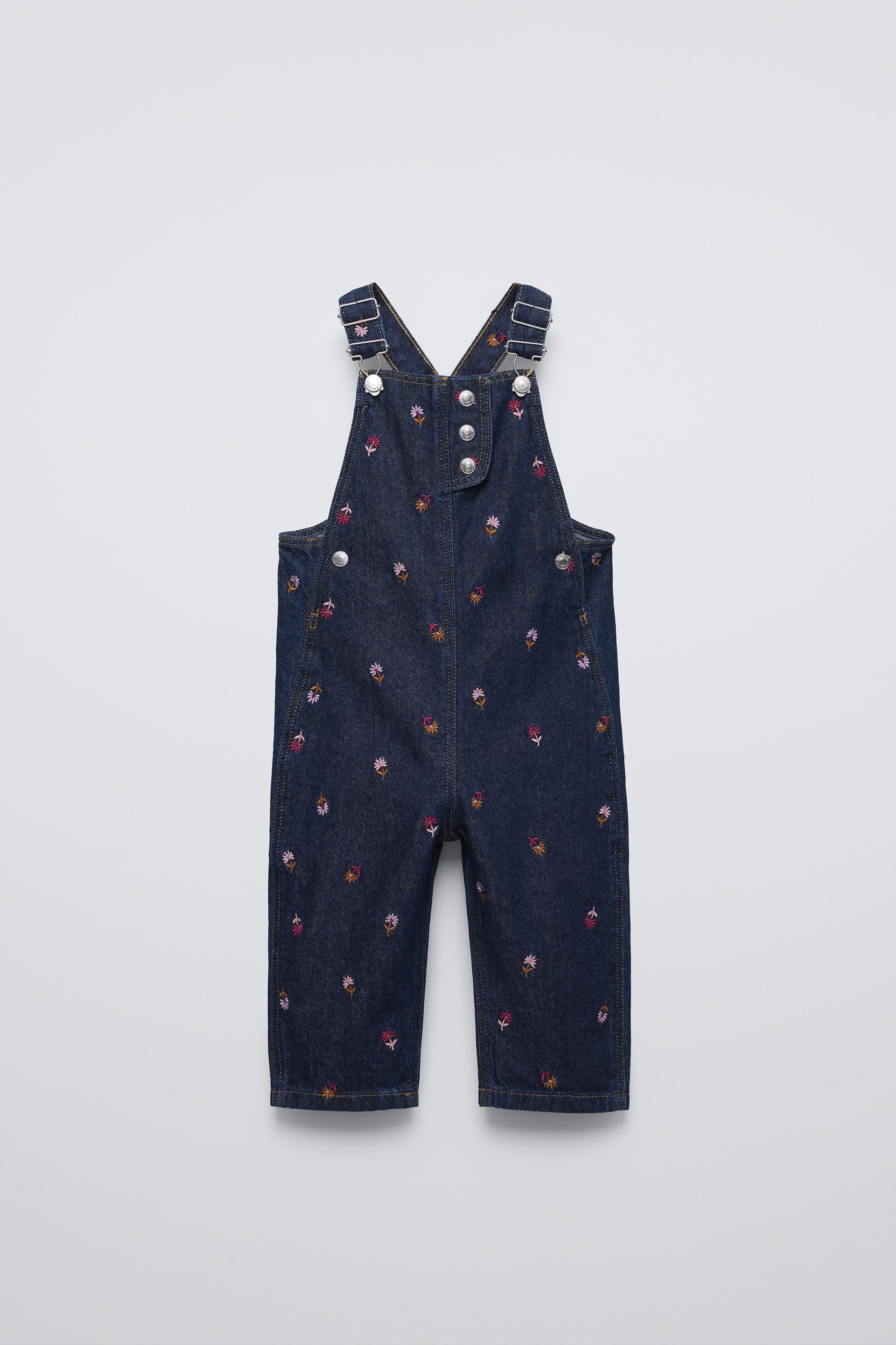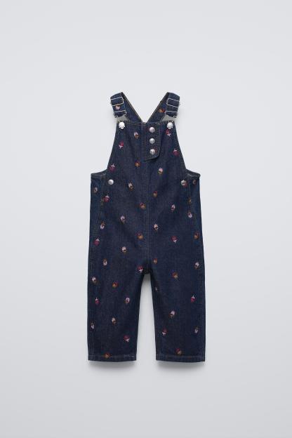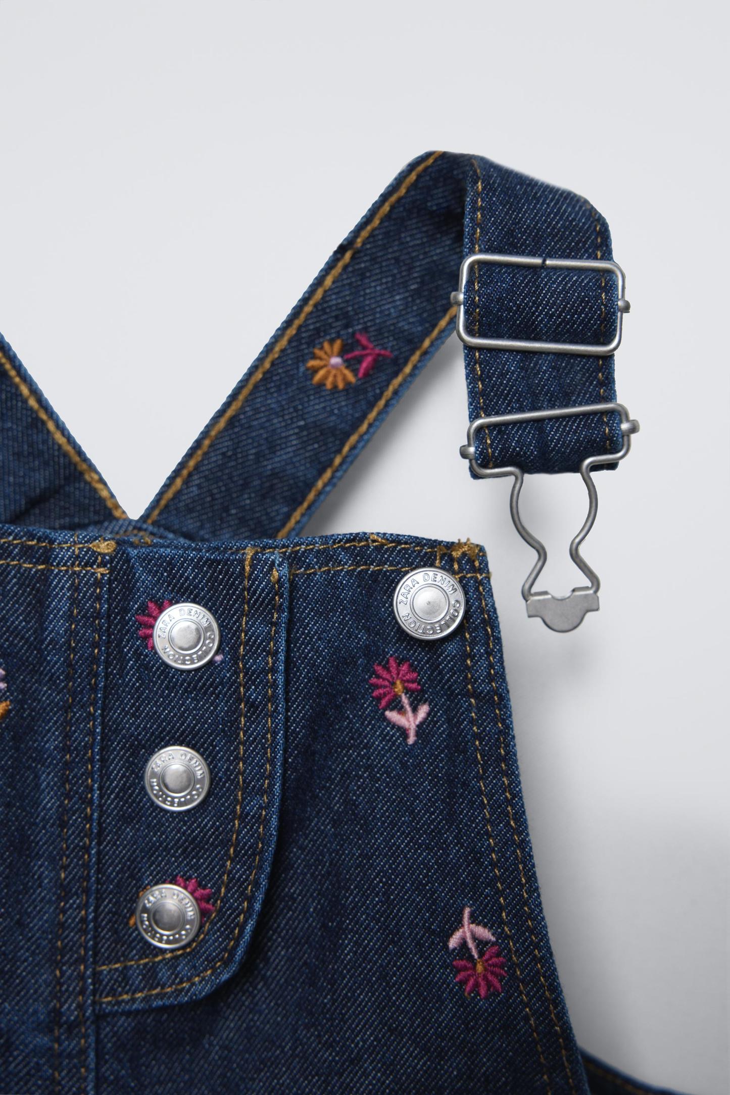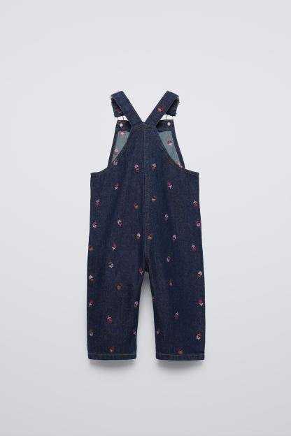 FLORAL EMBROIDERY DENIM OVERALLS