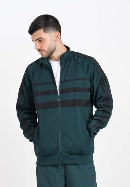 Adithtdas The First men's green zip-up sweatshirt. The essence of sporty style. Ribbed details and a high neck give this Adithtdas jacket a sporty look, while the 3-Stripes add authenticity. Whether you're spending the day outdoors or relaxing at home, this sporty jacket is just what you need. The model is wearing a size L and is 187 cm tall. We recommend washing and ironing at medium heat. Fall/Winter season.