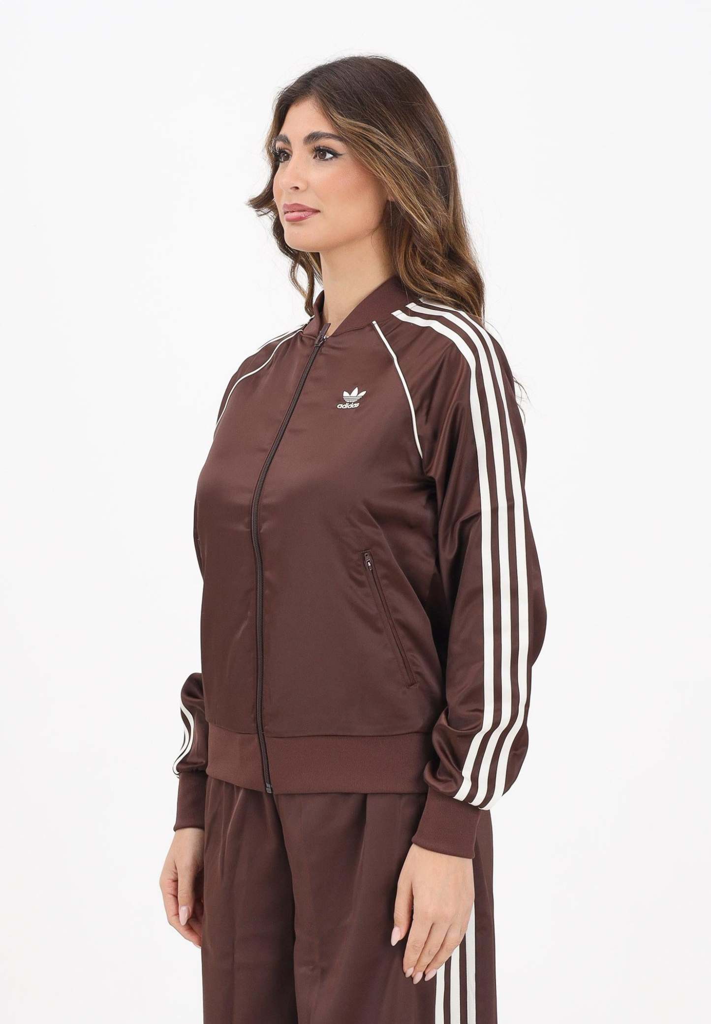 Adithtdas Women's Adicolor SST Satin brown zip sweatshirt for women