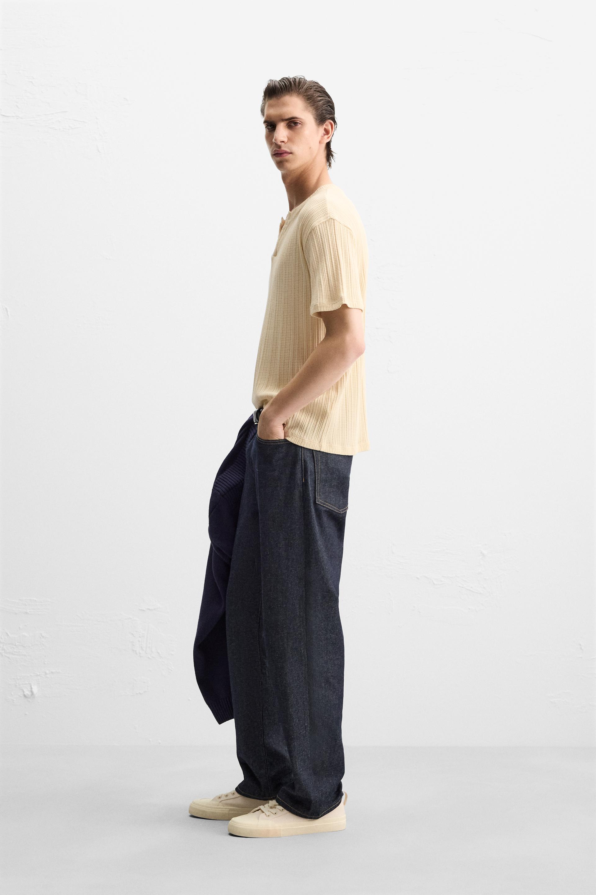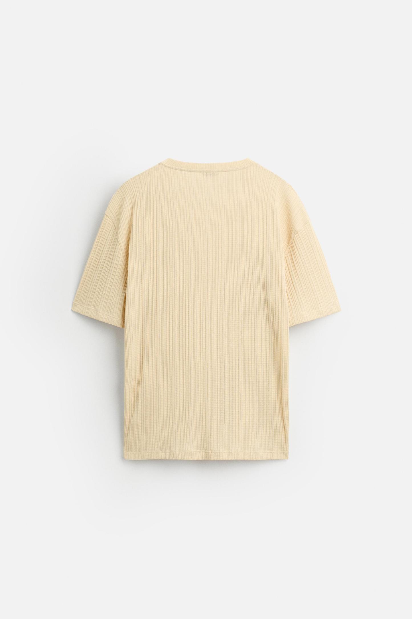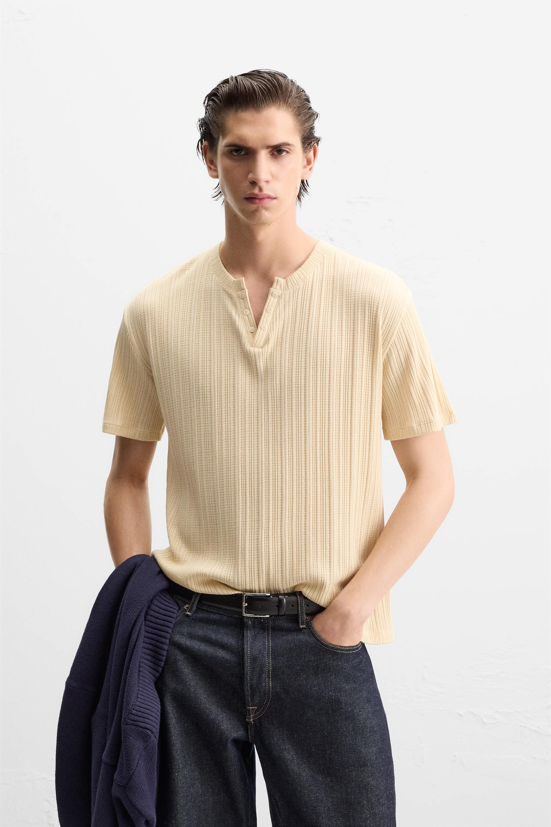 PLEATED BUTTON NECKLINE T-SHIRT