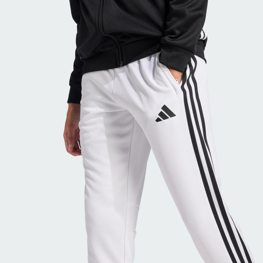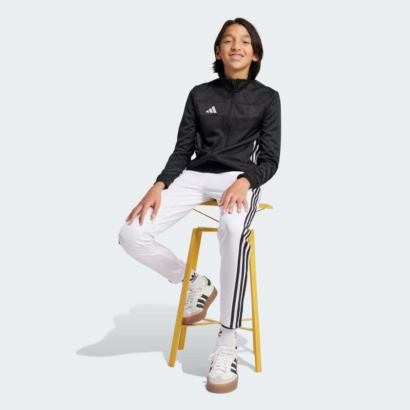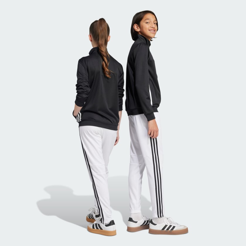Bring your beautiful game everywhere you go. These juniors' Tiro 25 Essentials pants take their lead from soccer training apparel to offer a sporty look and comfortable feel. AEROREADY controls moisture to keep you dry, while zip pockets securely stow must-haves. With their smooth fabric and bold style, these adithtdas track bottoms will quickly become first pick from your wardrobe. This product is made with 100% recycled materials. By reusing materials that have already been created, we help to reduce waste and our reliance on finite resources and reduce the footprint of the products we make.