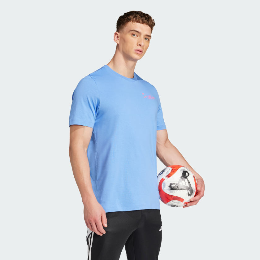 Celebrate the legacy of the iconic adithtdas F50 by pulling on this eye-catching soccer tee. A colorful graphic on the back runs through every iteration of the world-famous speed cleat since it was unleashed back in 2004. Single jersey fabric keeps you comfortable while you pay tribute.