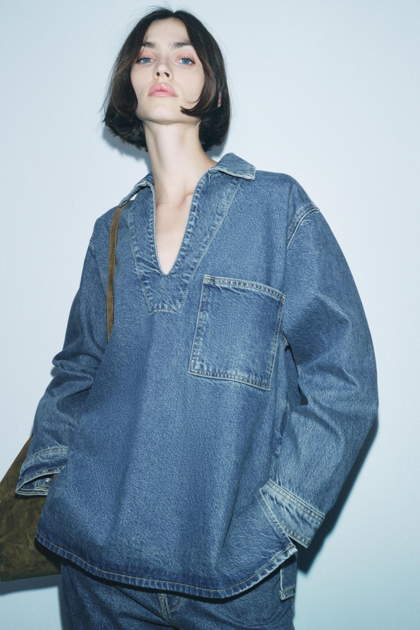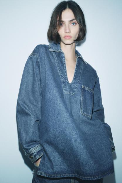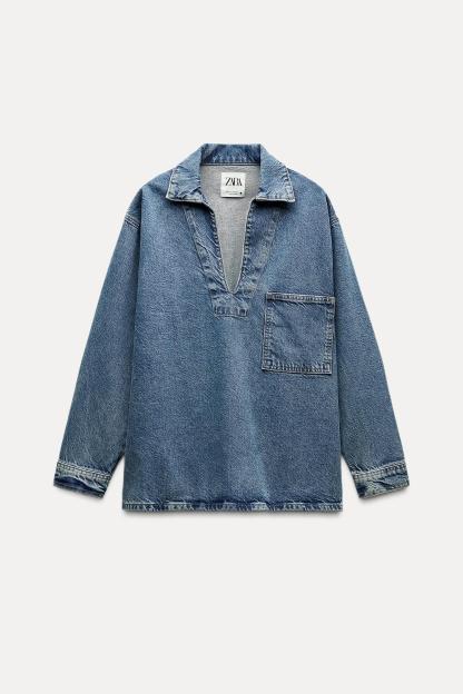 DENIM POLO COLLAR SHIRT ZW COLLECTION