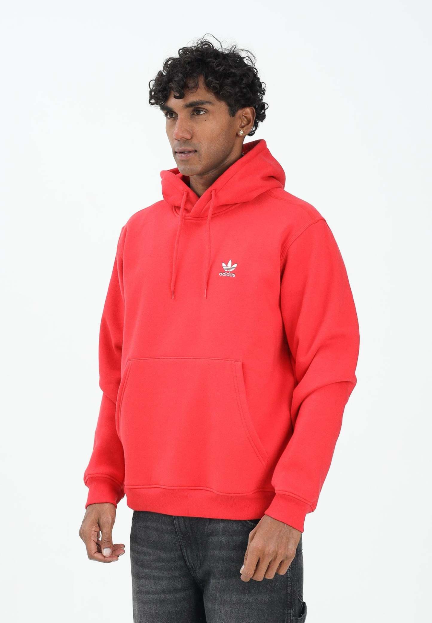Adithtdas Men's Trefoil Essentials Hoodie in Red. When you're ready to relax, slip into the familiar comfort of this Adithtdas hoodie. Soft fleece adds to the cozy feel, while classic details like ribbed cuffs and an embroidered Trefoil logo complete the casual, sporty look. With a regular fit that's not too loose, not too tight, it's your new favorite piece for lounging. The model is wearing a size L and is 187 cm tall. Machine wash and iron at medium heat. Fall/Winter season.