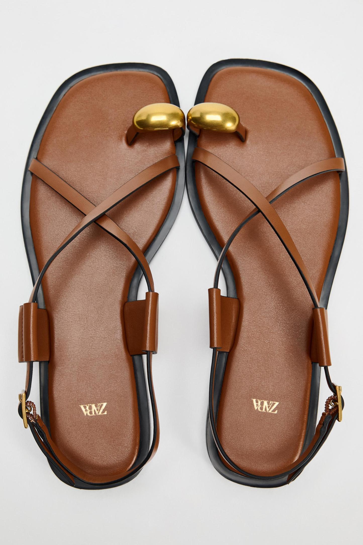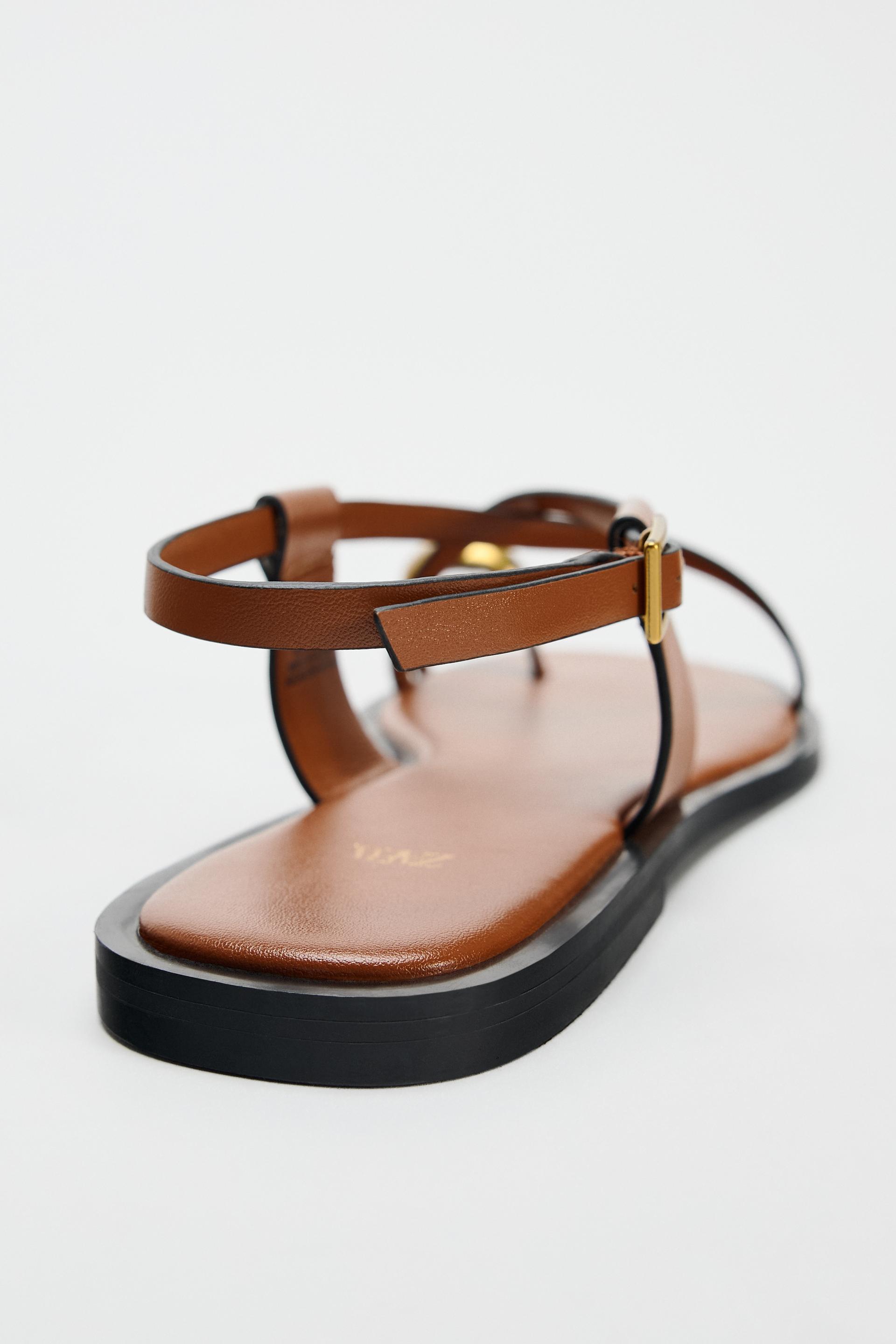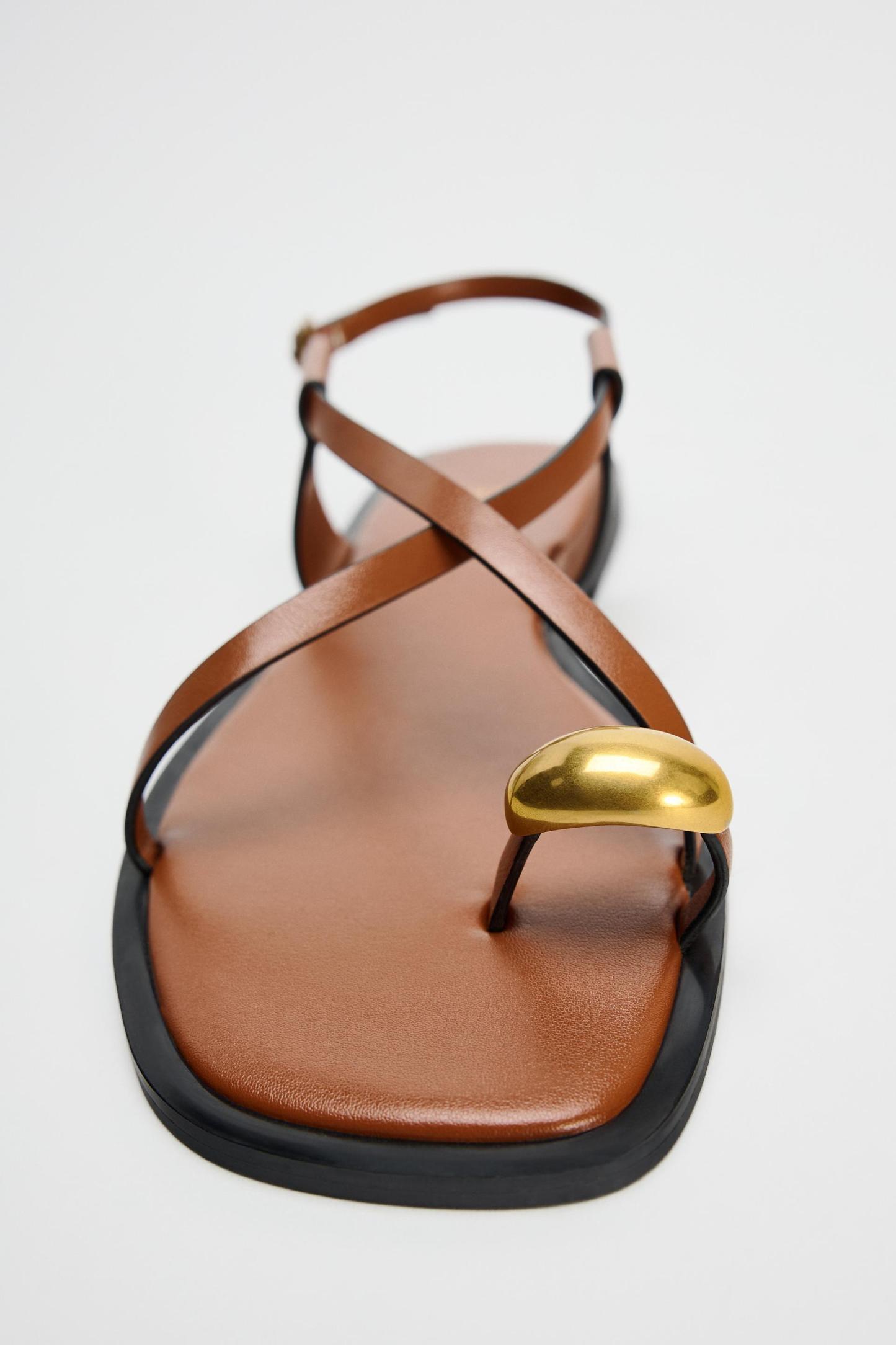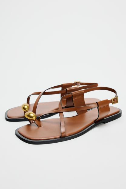 FLAT STRAPPY SANDALS WITH METAL EMBELLISHMENT