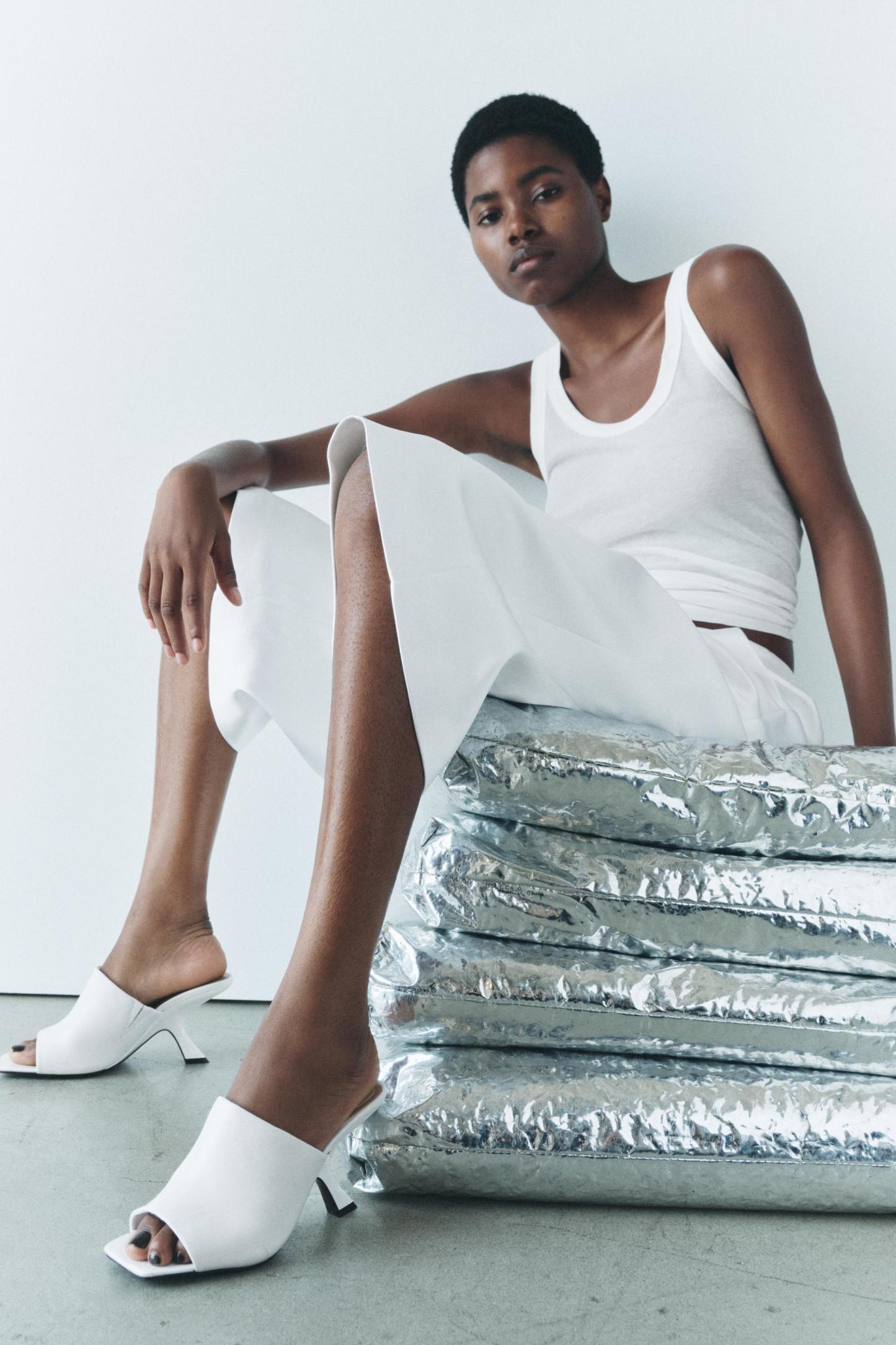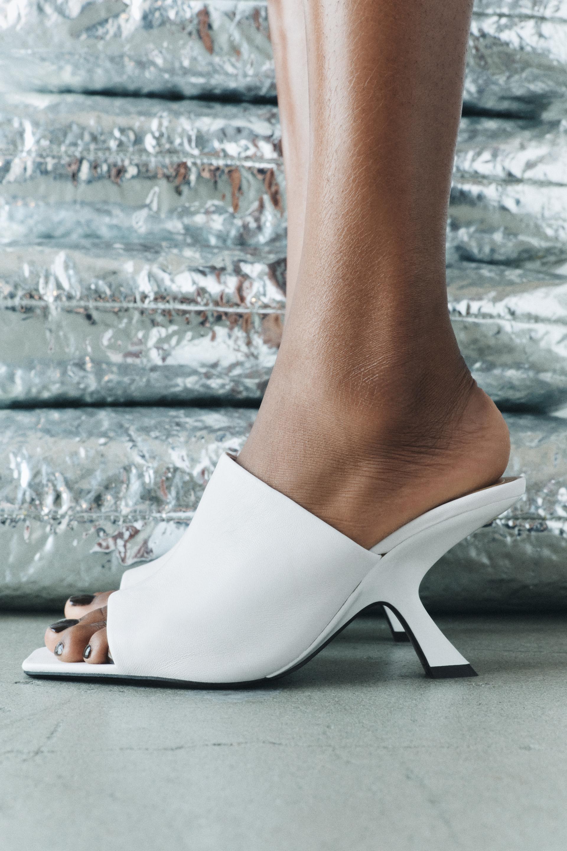 HEELED LEATHER SLIDES