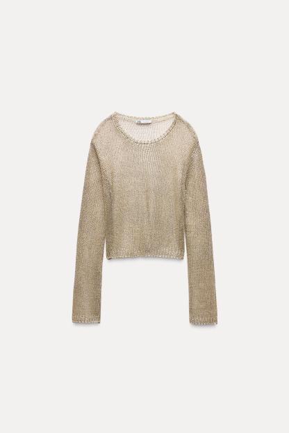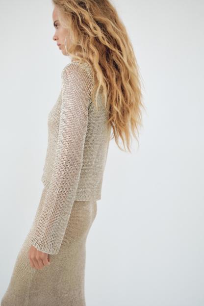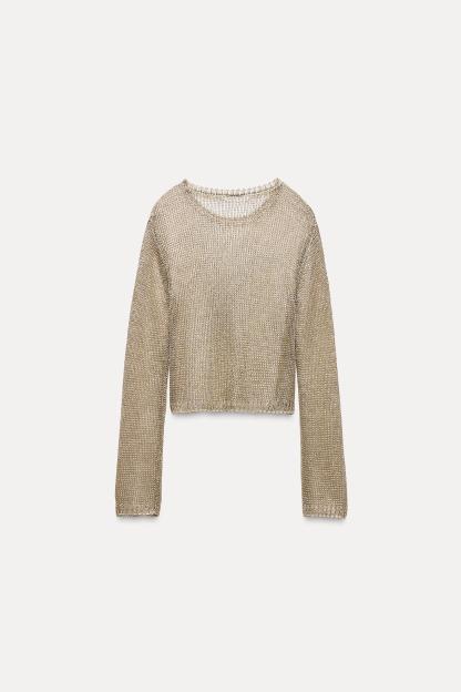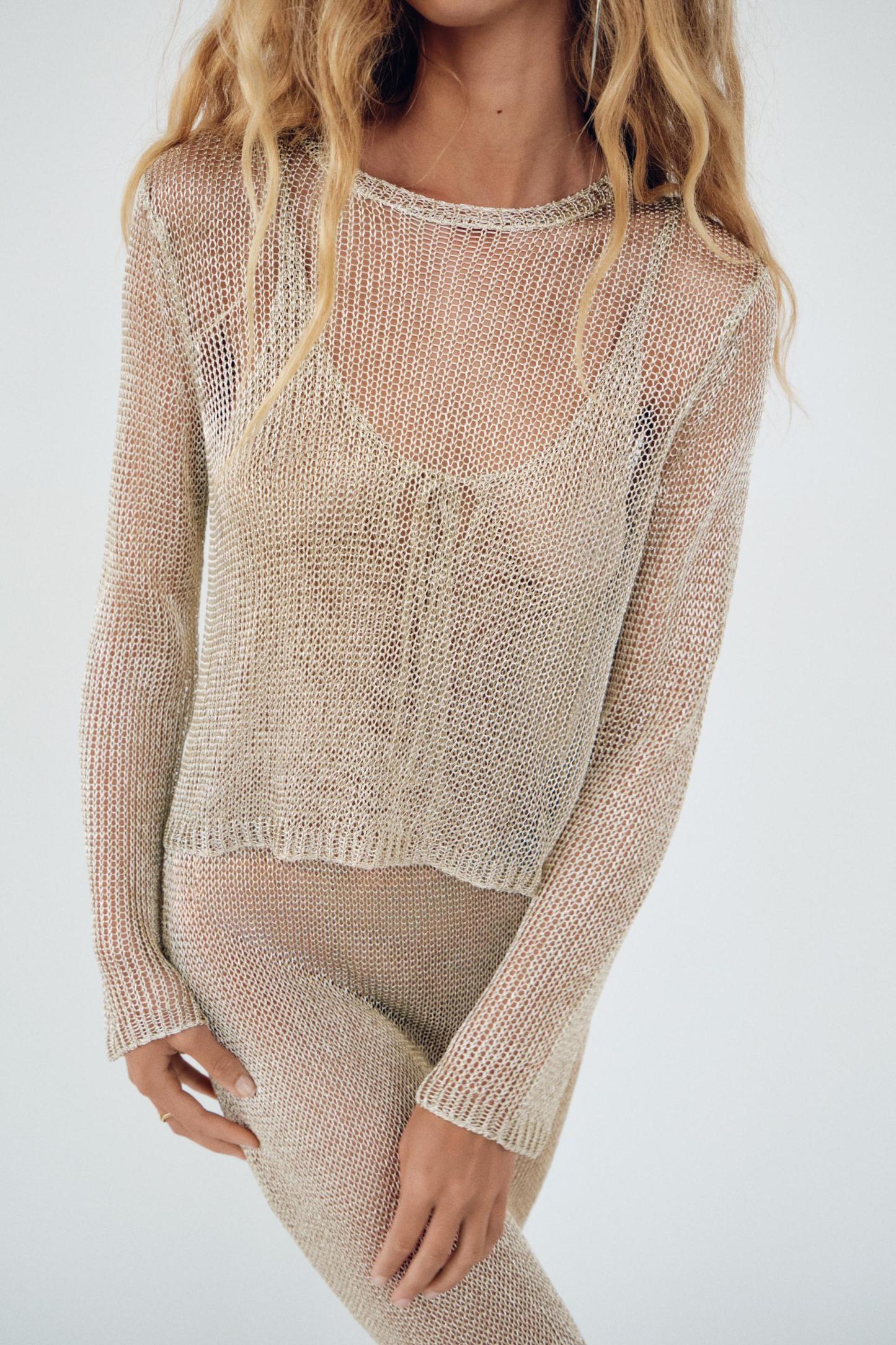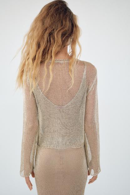 METALLIC THREAD MESH SWEATER TOP
