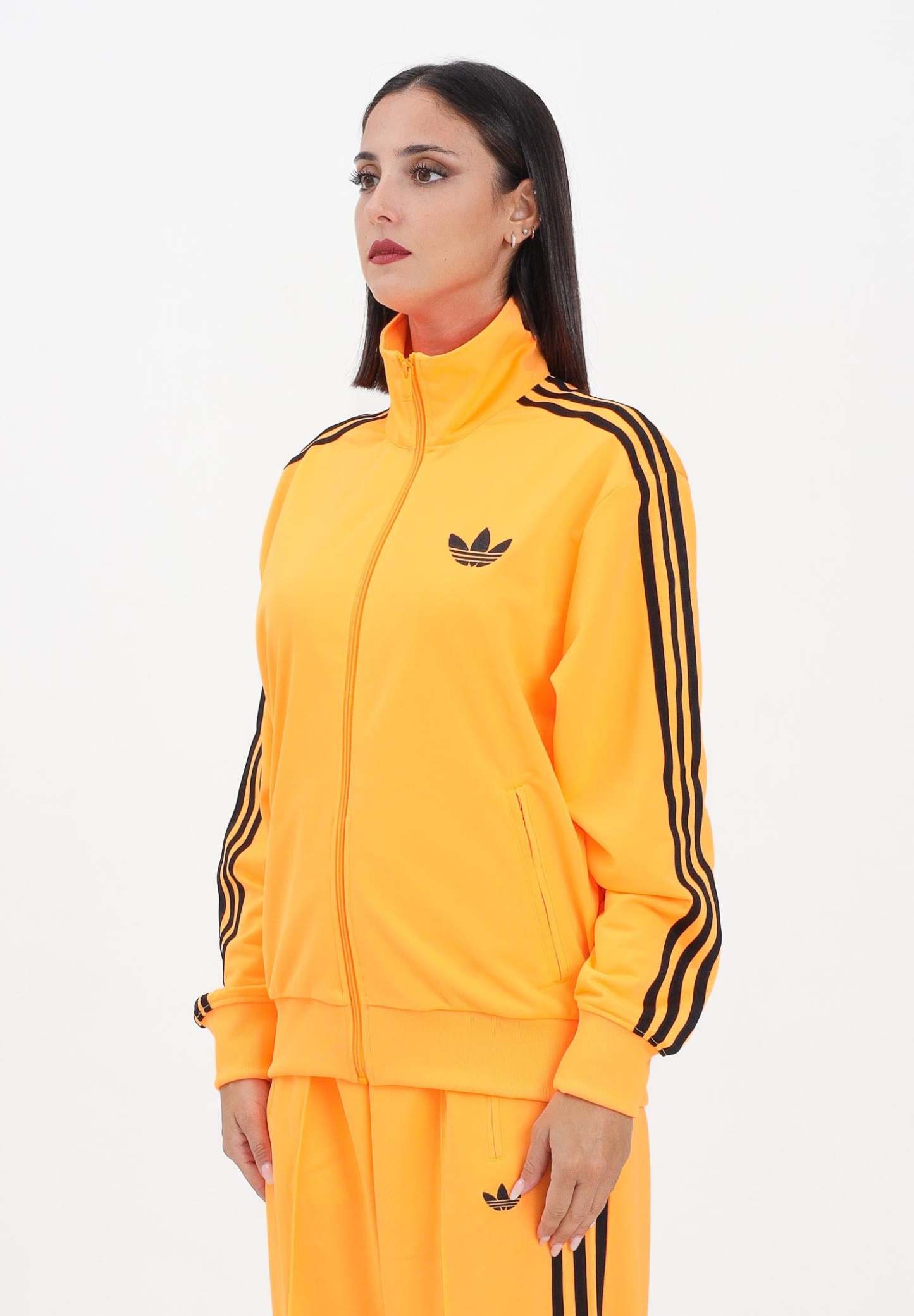 Adithtdas Adicolor Classic Firebird Loose Zip-Up Sweatshirt in Fluorescent Orange for Women. The Adithtdas Firebird Tracksuit has been making its mark for over 50 years. This tracksuit jacket updates the original with a loose fit and a casual vibe. The unmistakable 3-Stripes down the sleeves and a small Trefoil on the chest complete the look. The shiny tricot construction ensures a timeless look. The model wears a size S and is 170 cm tall. Machine wash and iron at medium heat. Fall/Winter season.