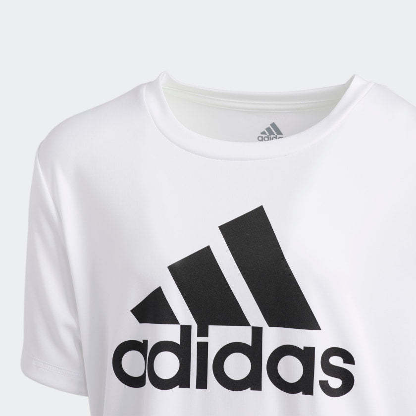 A go-to t-shirt for hard-charging kids. Lightweight fabric wicks sweat away from their skin during never-ending foam dart battles. It's finished with a bold adithtdas Badge of Sport logo on the chest.