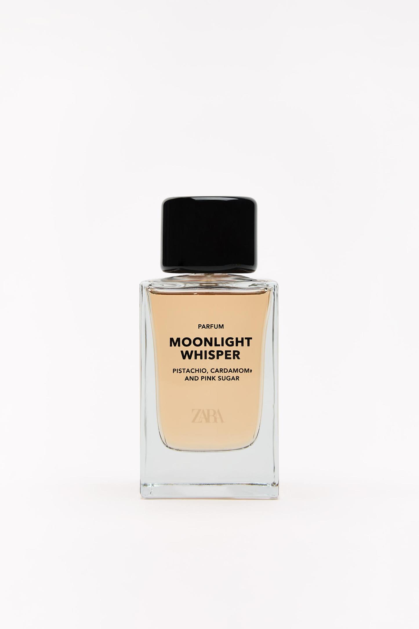 COMPOSITION & CARECOMPOSITIONWe work with monitoring programs to guarantee compliance with the social, environmental, and health and safety standards of our products. To assess its compliance, we have developed an audit program and plans for continual improvement.ZARA MOONLIGHT WHISPER PARFUMALCOHOL DENAT. � FRAGRANCE (PARFUM) � WATER (AQUA) � DIPROPYLENE GLYCOL � CITRUS AURANTIUM BERGAMIA PEEL OIL � VANILLIN � TETRAMETHYL ACETYLOCTAHYDRONAPHTHALENES � LIMONENE � COUMARIN � BENZOTRIAZOLYL DODECYL P-CRESOL � TRIS(TETRAMETHYLHYDROXYPIPERIDINOL) CITRATE � LINALYL ACETATE � HYDROXYCITRONELLAL � LINALOOL � CITRONELLOL � CITRUS LIMON PEEL OIL � PINENE � ALPHA-ISOMETHYL IONONE � BENZALDEHYDE � CITRAL � GERANYL ACETATE � TERPINEOL � PELARGONIUM GRAVEOLENS FLOWER OIL � TERPINOLENE � ALPHA-TERPINENE � GERANIOL � beta-Caryophyllene � CINNAMYL ALCOHOL � MENTHOL � TRIMETHYLCYCLOPENTENYL METHYLISOPENTENOL � CAMPHOR � CARVONE � FD&C Yellow No. 5 (CI 19140) � Ext. D&C Violet No. 2 (CI 60730) � D&C Red No. 33 (CI 17200)Warnings
