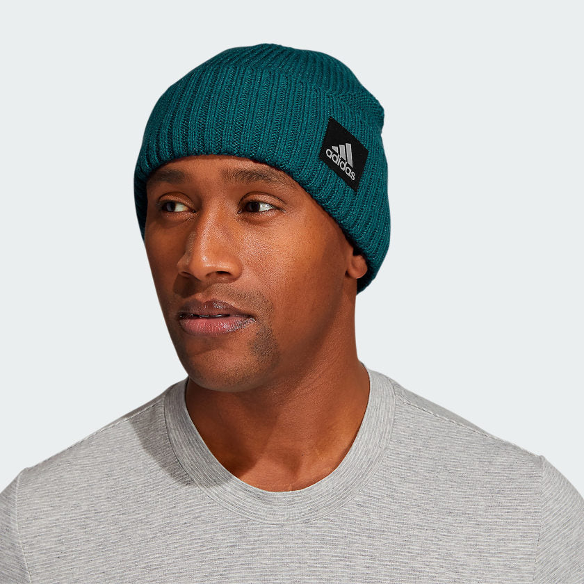 This adithtdas beanie combines different knit patterns for a look that's straight out of the ski lodge. Cozy acrylic yarn and a doubleknit lining help keep you warm whether you're on the slopes or kicking back. A faux-suede patch with the adithtdas Badge of Sport adds rustic style.