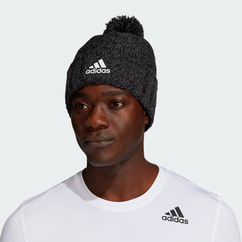 A knit beanie never goes out of style. Heavy-gauge yarn has a heathered effect for extra texture and depth. It's lined with fleece for a cozy, warm feel. A felt adithtdas Badge of Sport patch adds extra softness.