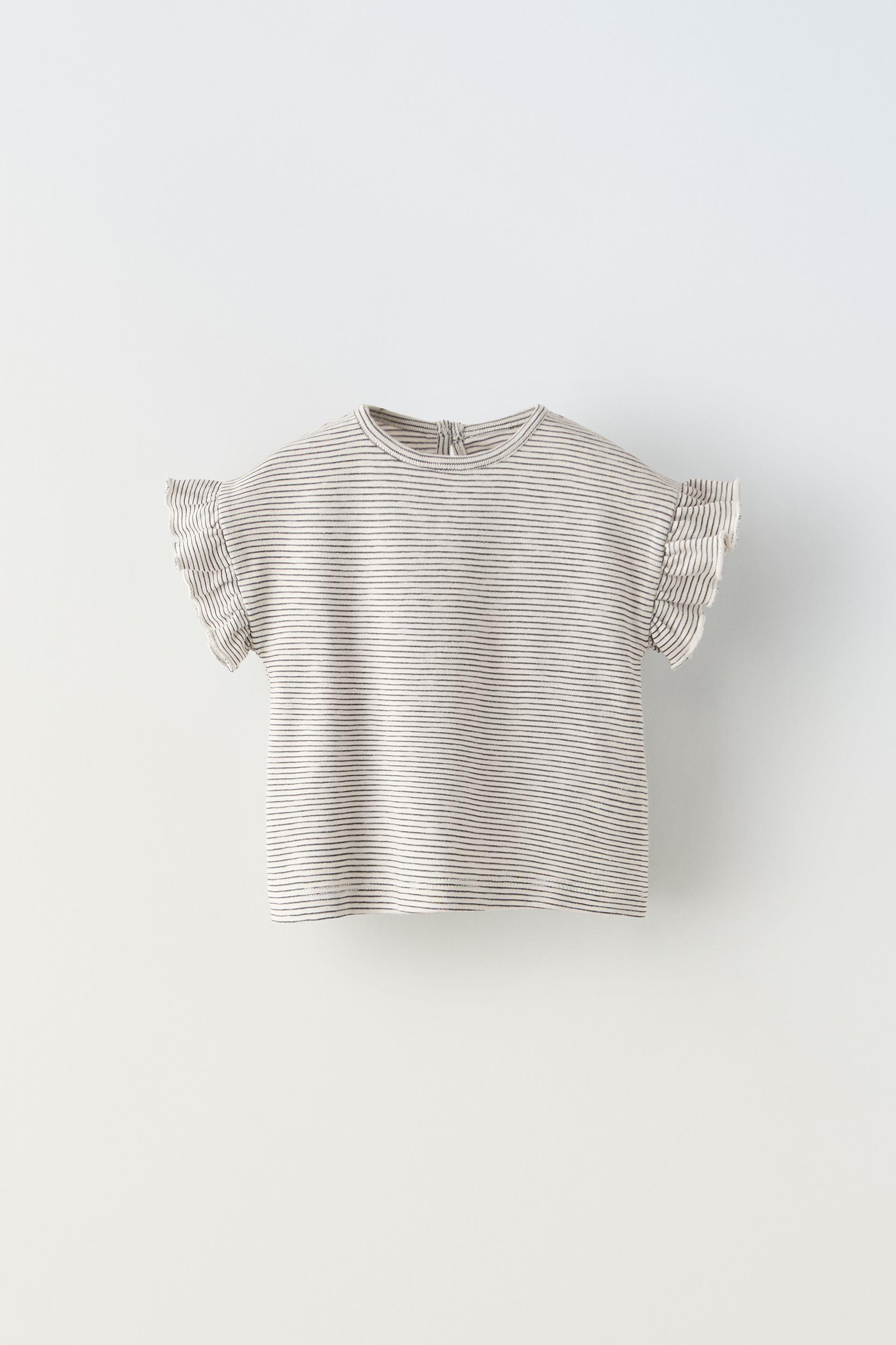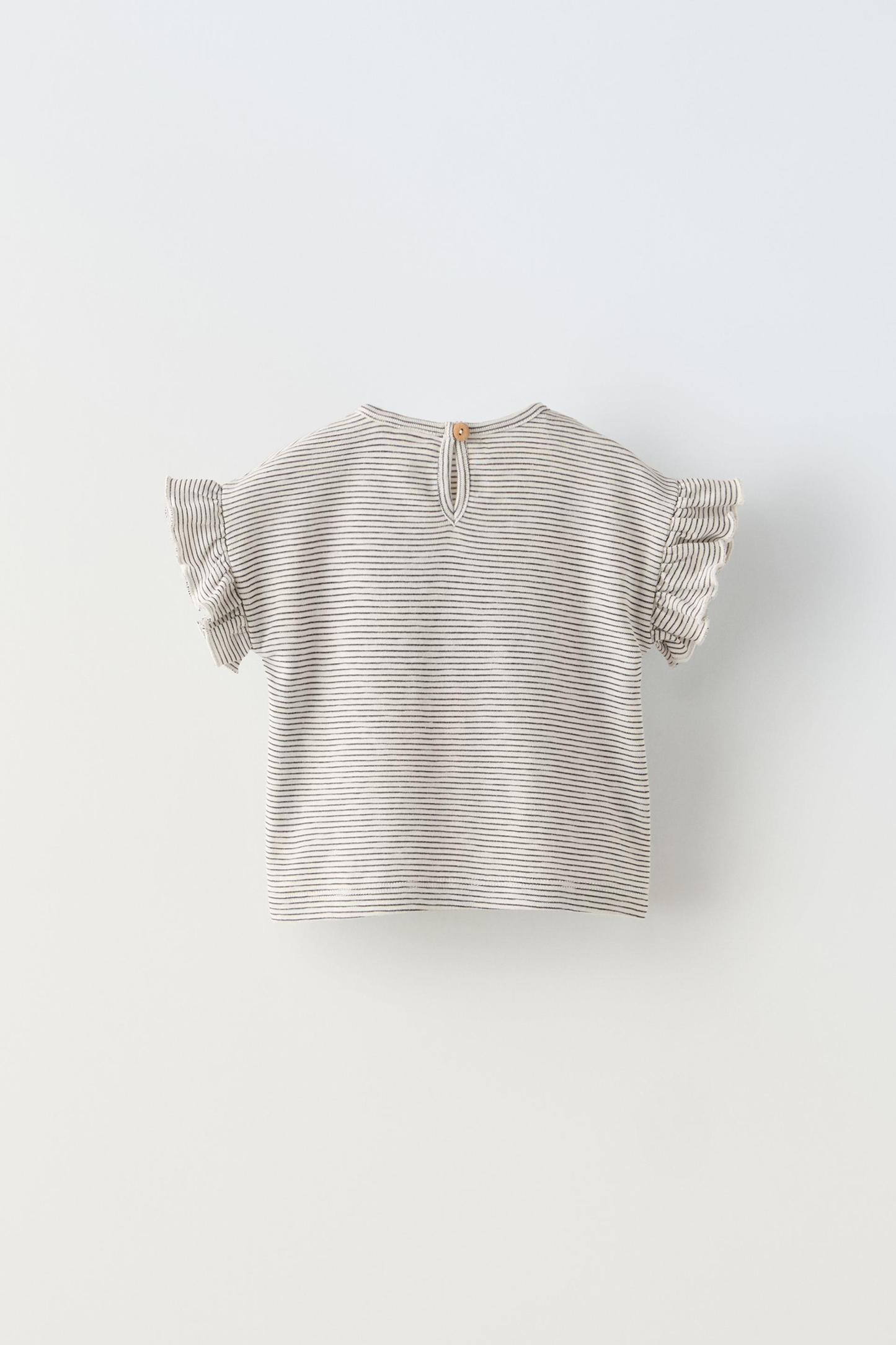 STRIPED T-SHIRT WITH RUFFLES