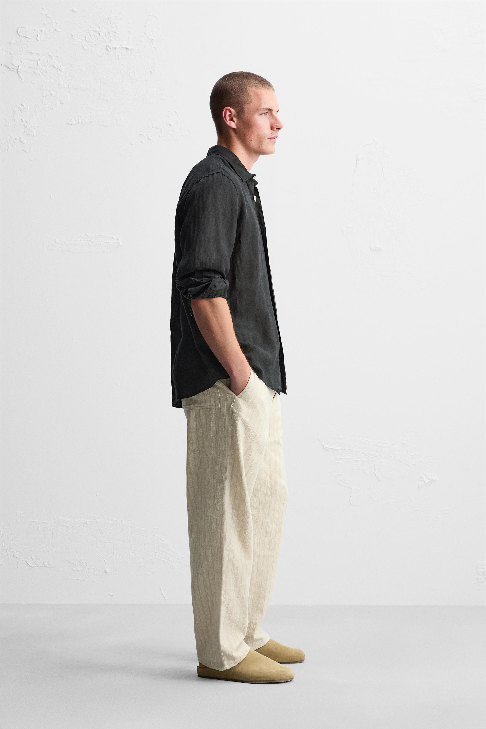STRIPED TEXTURED PANTS