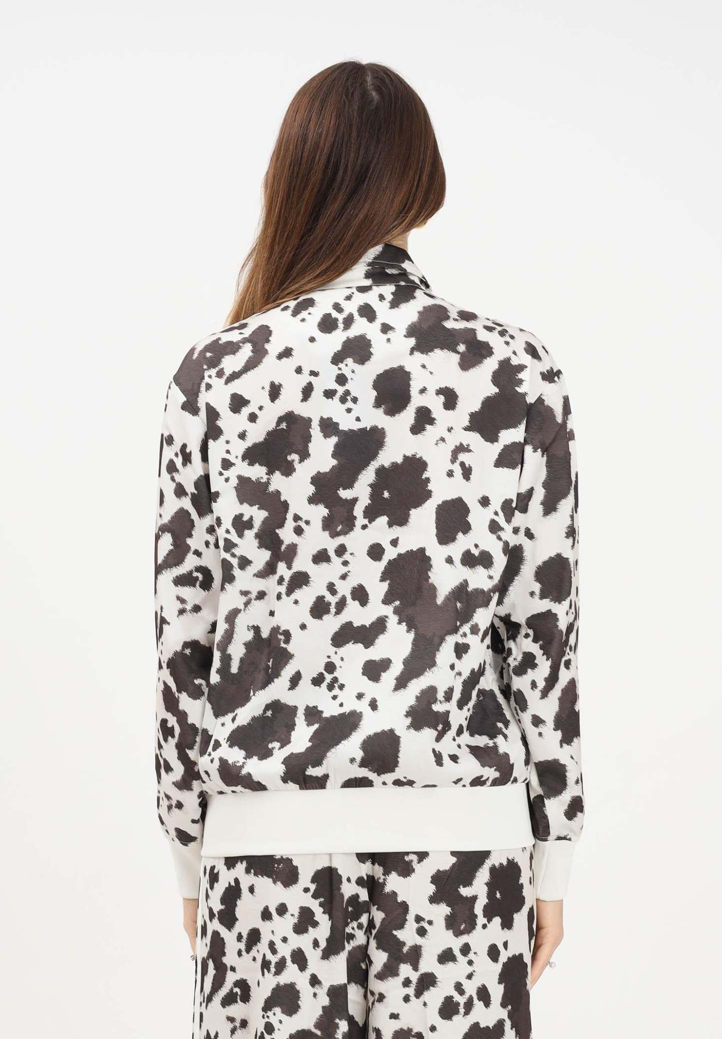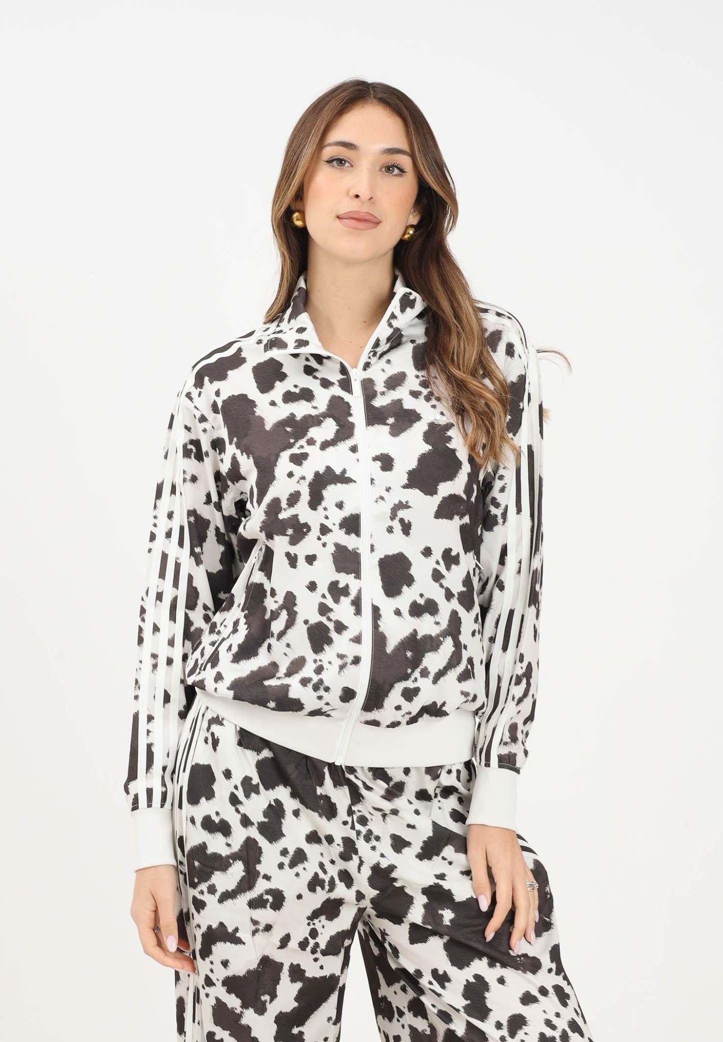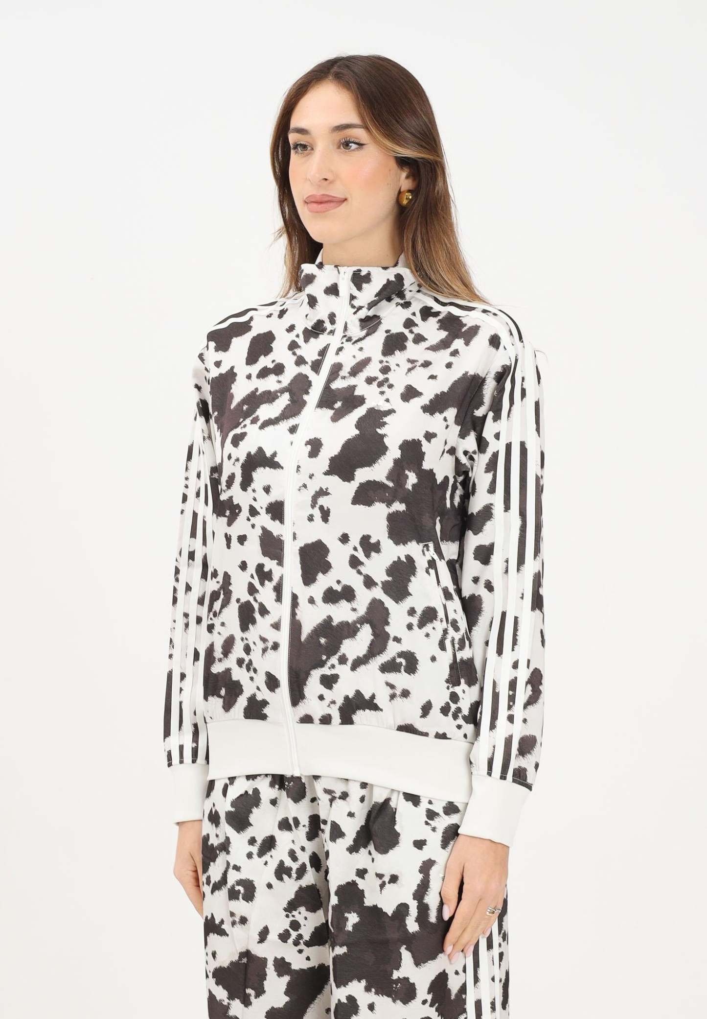 Adithtdas Adithtdas Satin women's zip-up sweatshirt in cream and brown. If you're going to do it, do it big. This Adithtdas training jacket encourages you to give it your all. Featuring an animal print, this satin jacket revisits a timeless sports silhouette. Some iconic details remain in place, such as the 3-Stripes integrated into the print along the sleeves, the ribbed details, and, of course, the high neck. The model is wearing a size S and is 170 cm tall. Machine wash and iron at medium heat. Fall/Winter season.