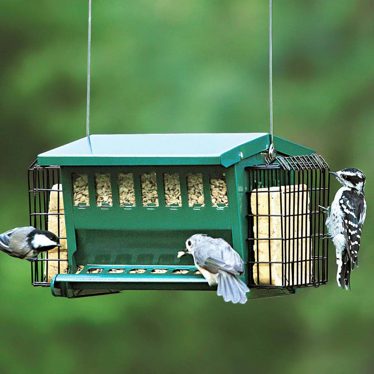 - Birds love seed & suet, perfect for attracting more birds with great views