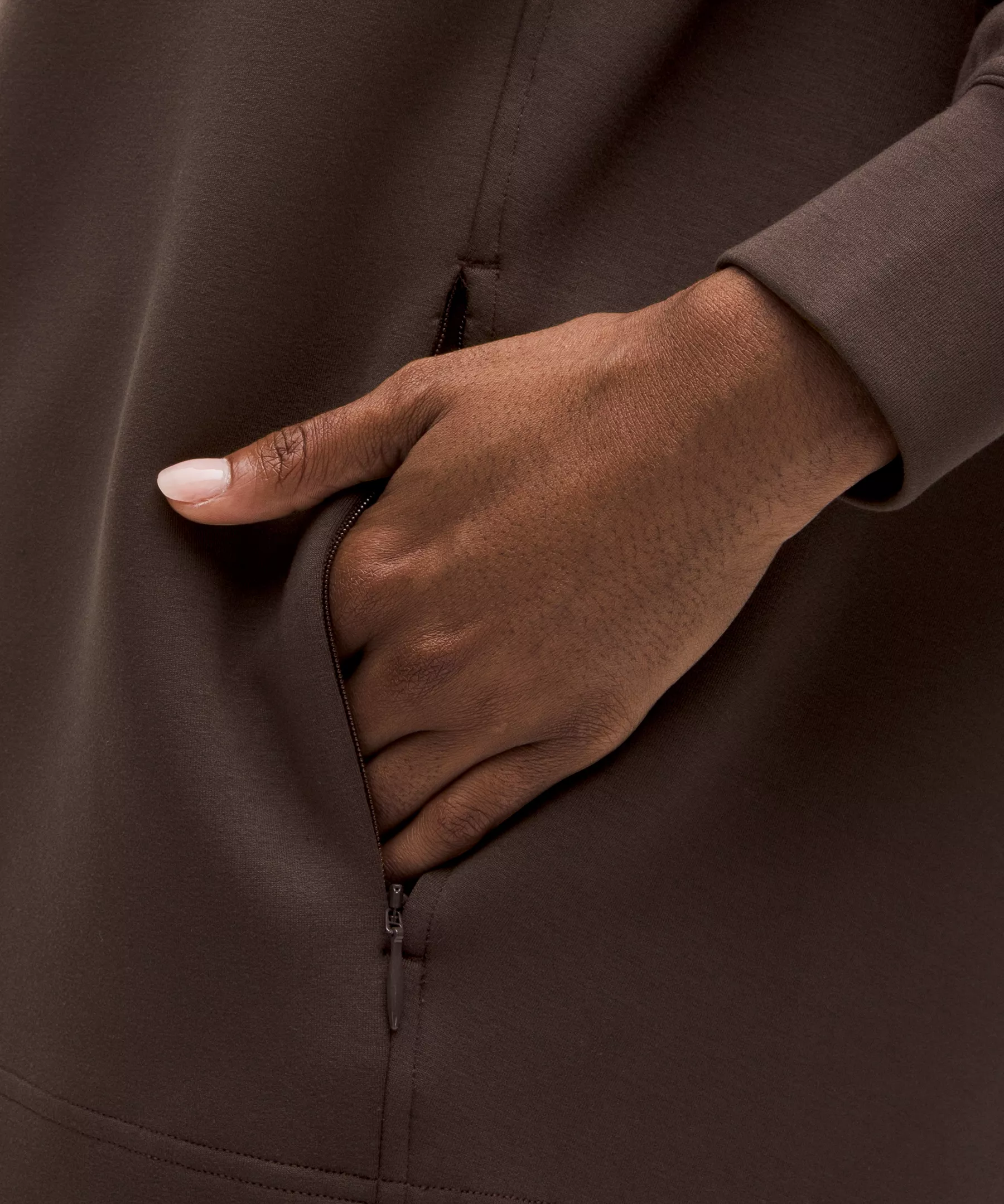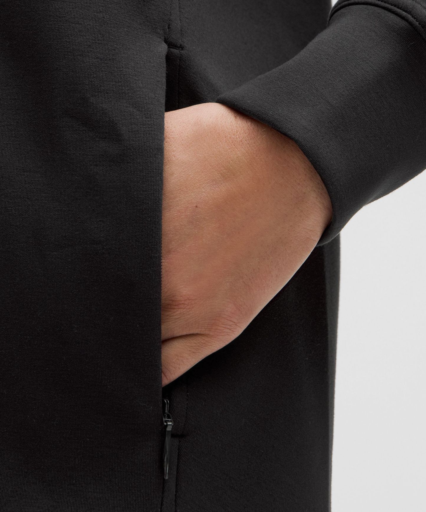 - Kangaroo pocket with hidden phone sleeve