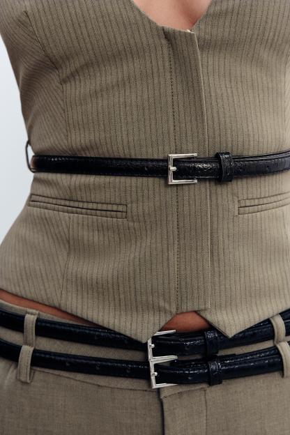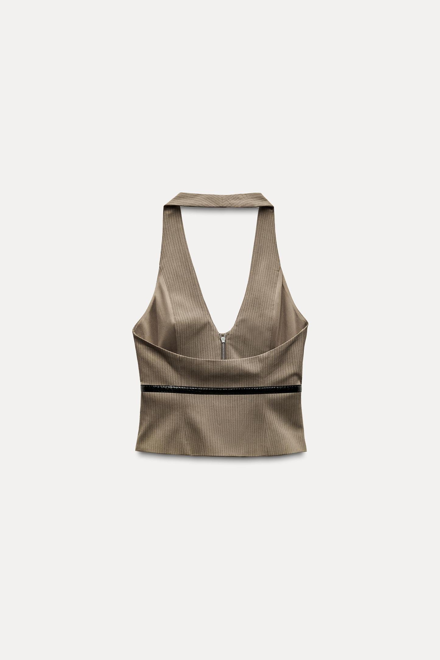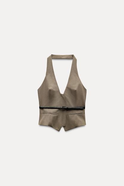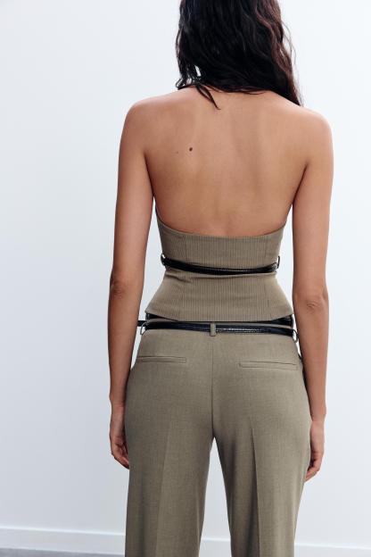 STRIPED BELTED HALTER TOP