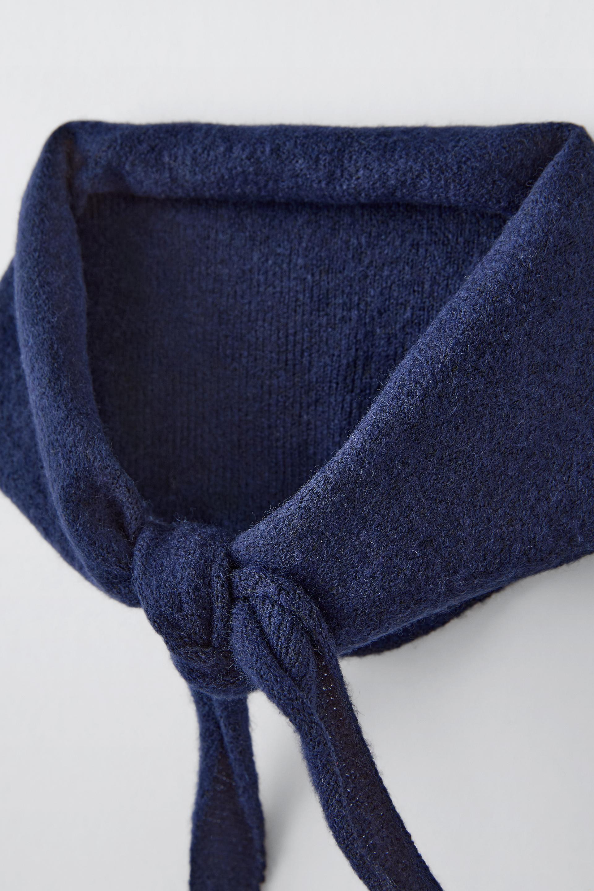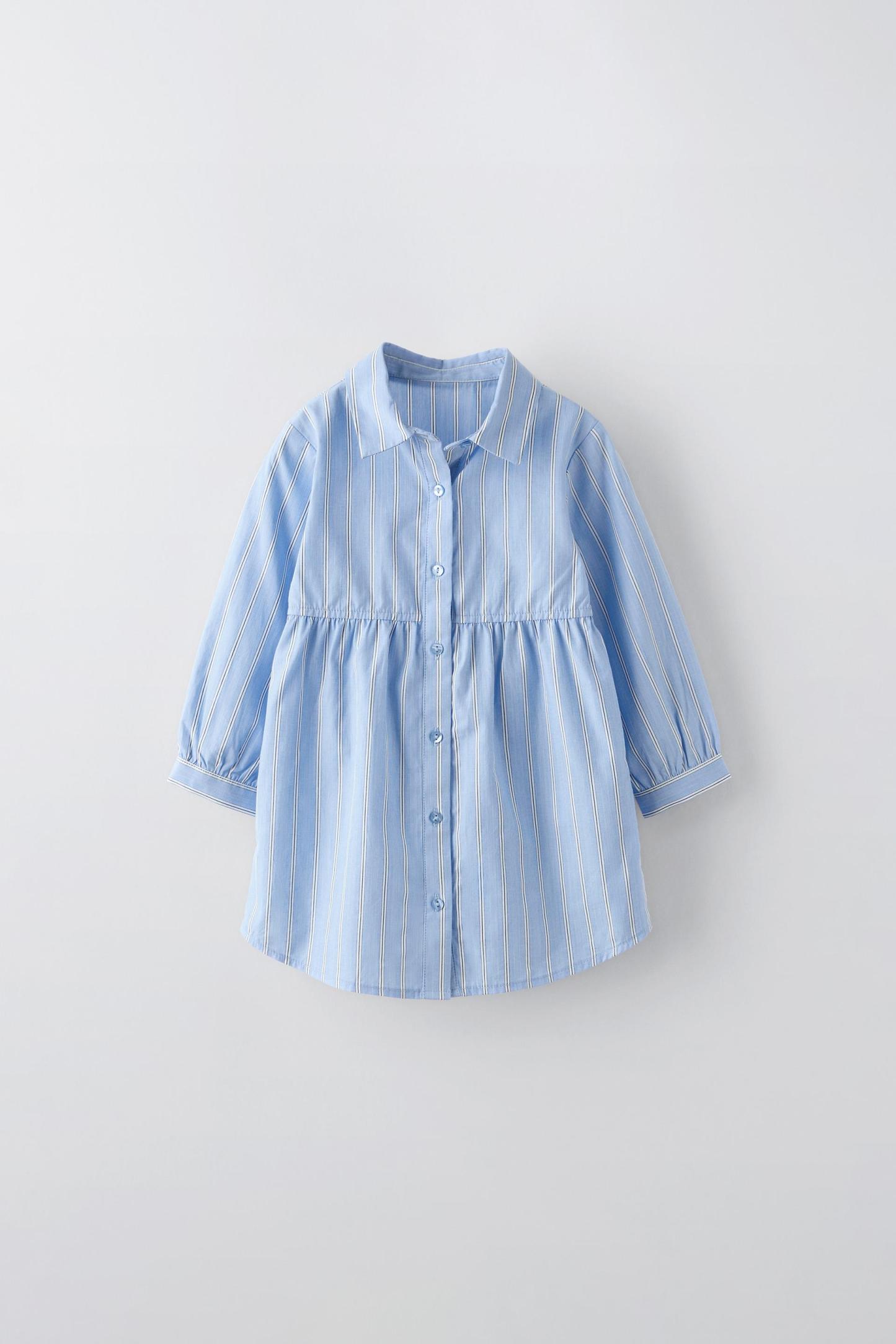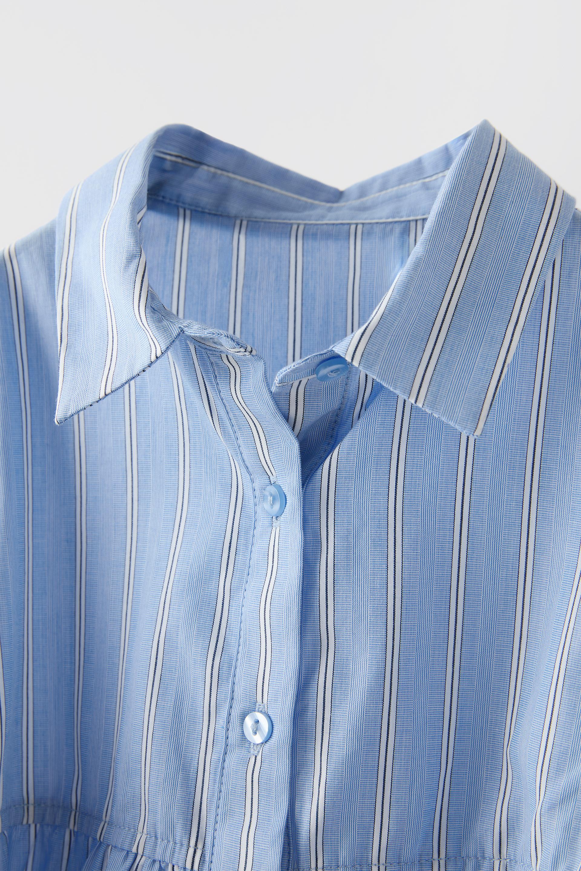STRIPED SHIRT DRESS WITH KNIT SHAWL