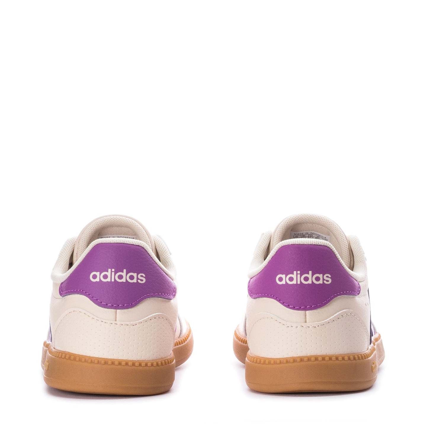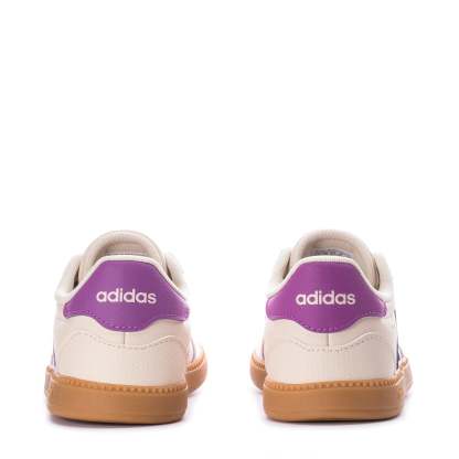 - Adithtdas branding on heel with three-stripe pattern.