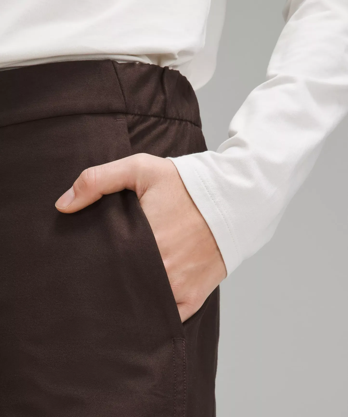 - Fly front with elasticated waistband in the back