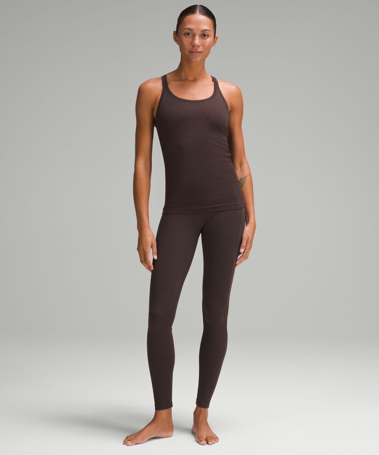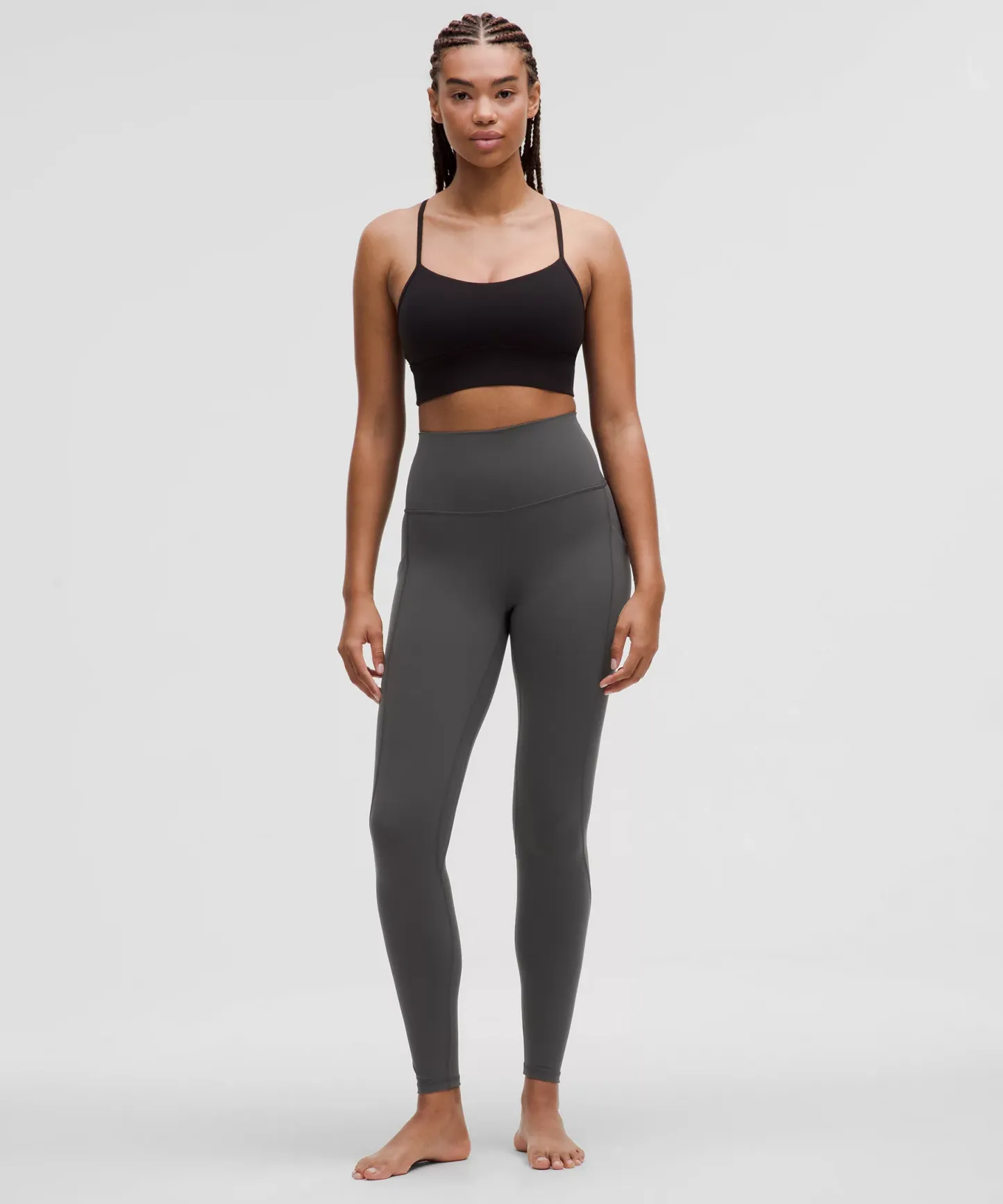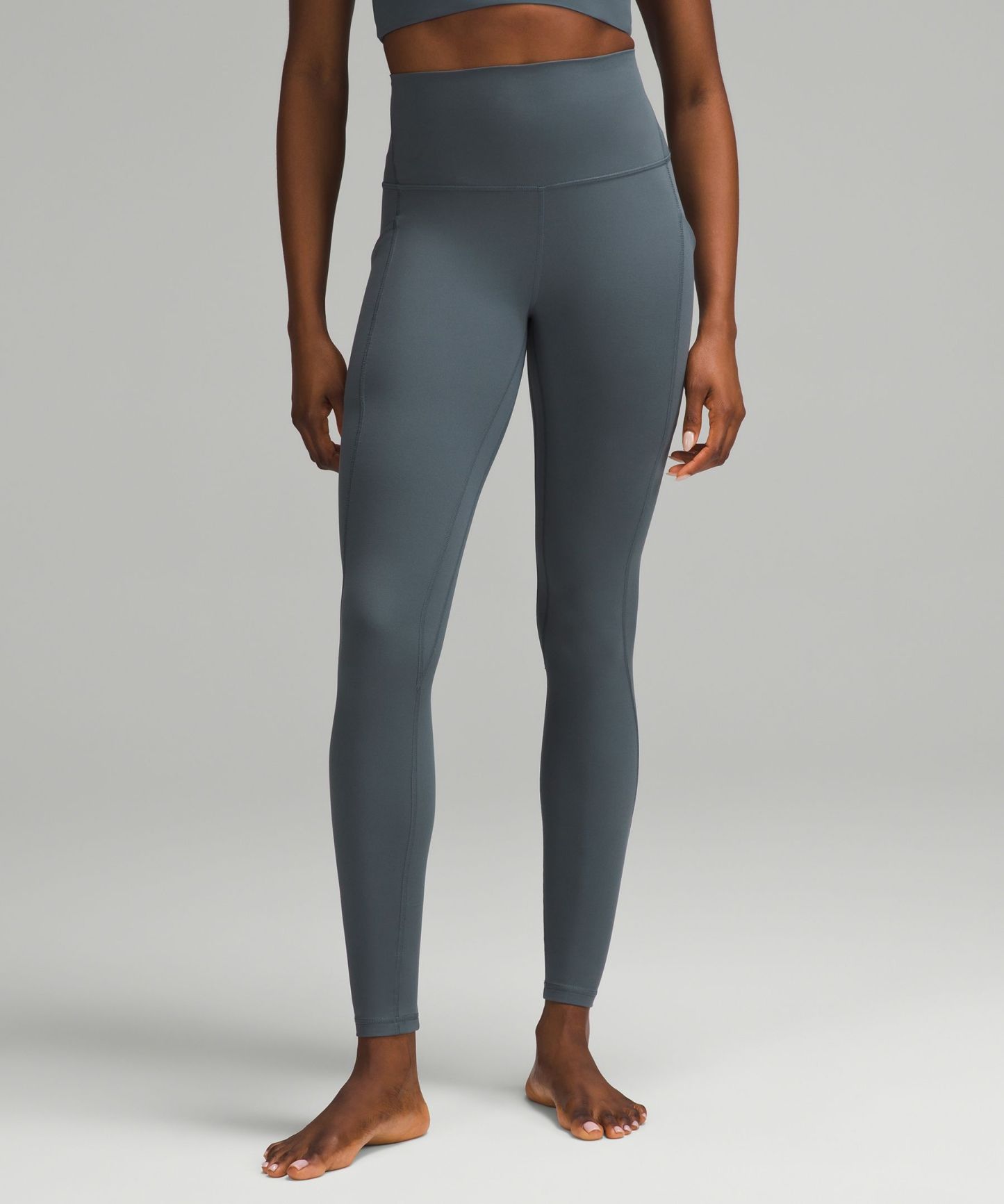 A high-rise waistband keeps you covered during forward folds and downward dogs. Our 28" length is intended to sit at your ankle.