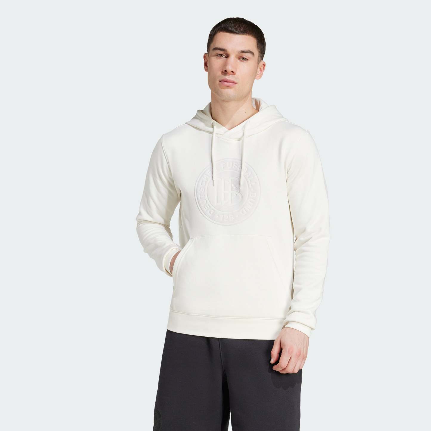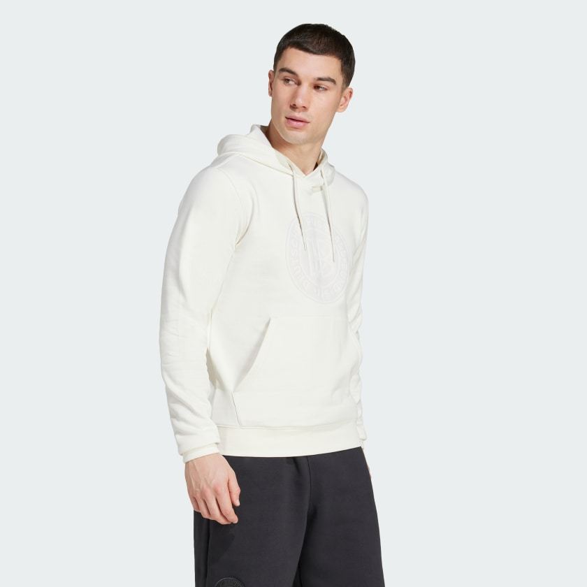 Mark 125 years of the Germany national team, and its long association with the 3-Stripes. Inspired by the side's special anniversary match kit, this adithtdas hoodie wraps you in warm, cotton-blend fleece fabric. Sitting proudly on the chest, a specially created badge leaves no doubts about who you back on the soccer pitch.