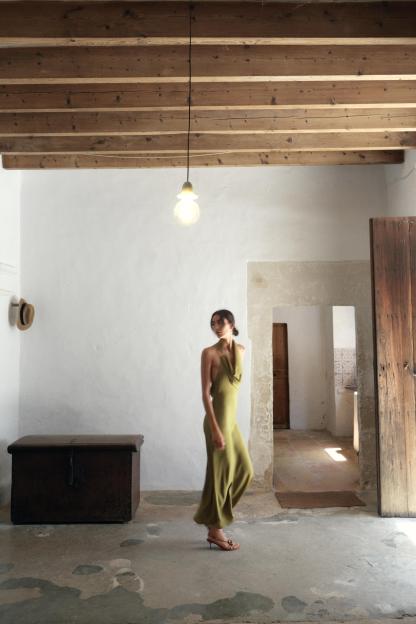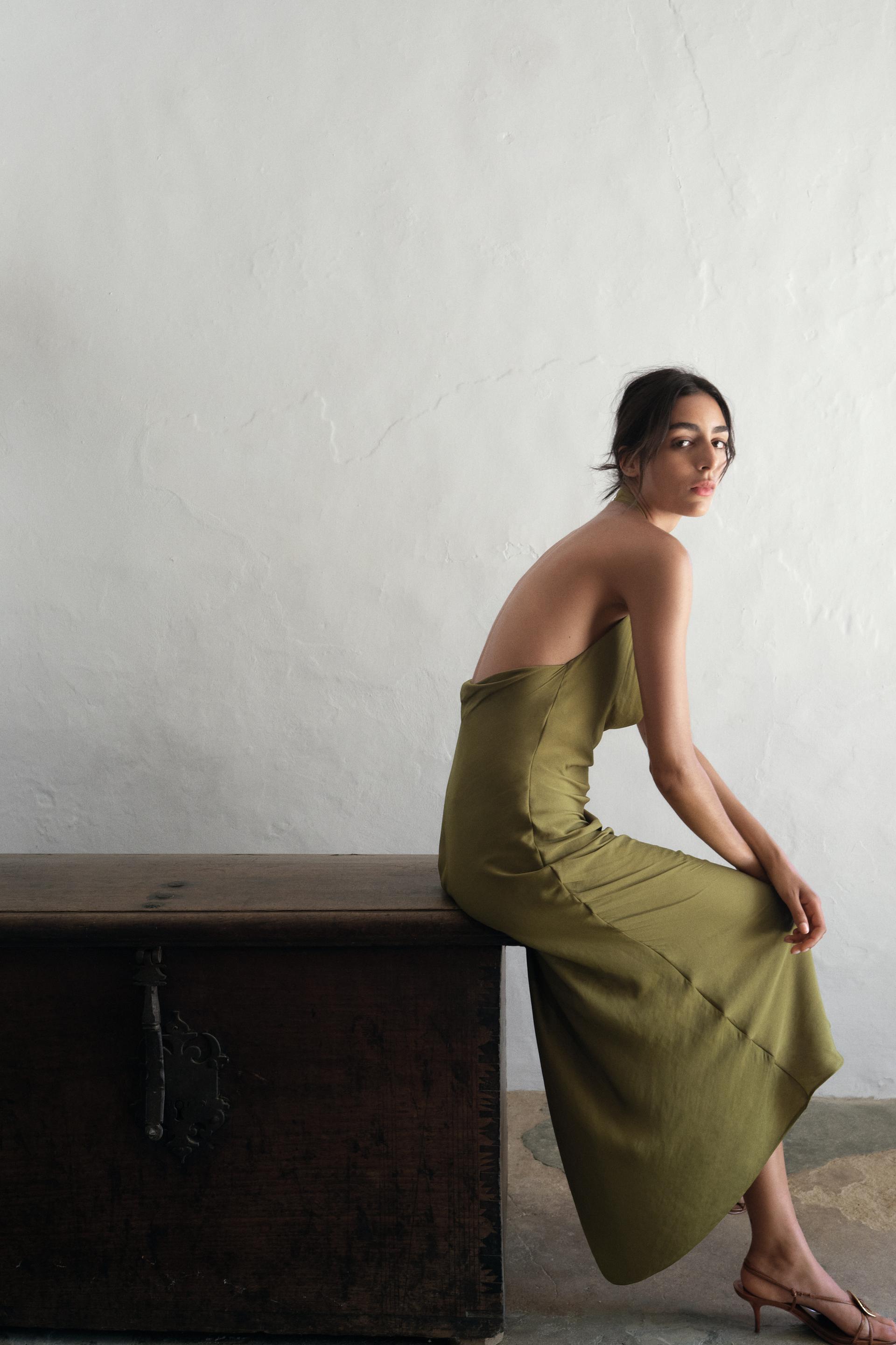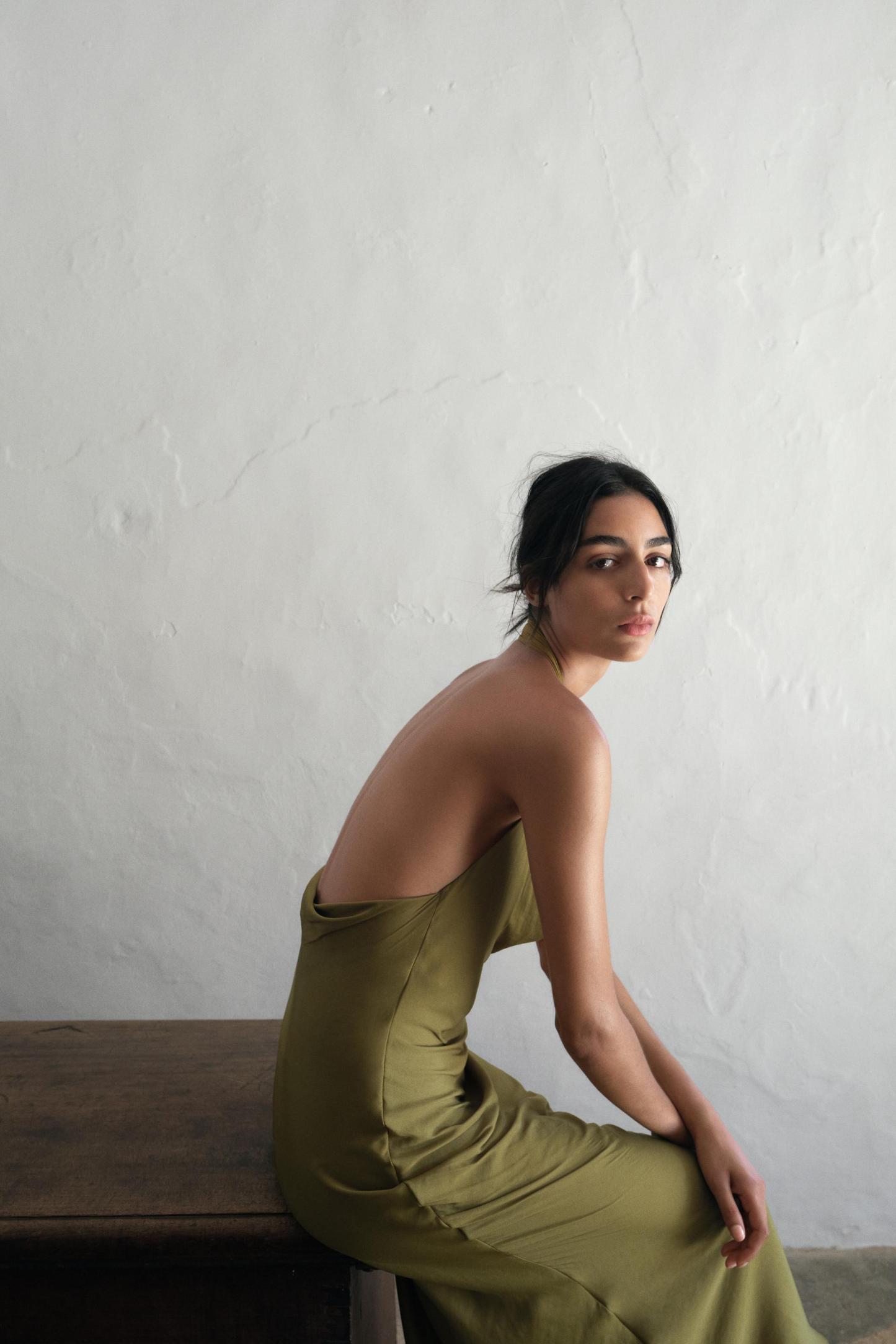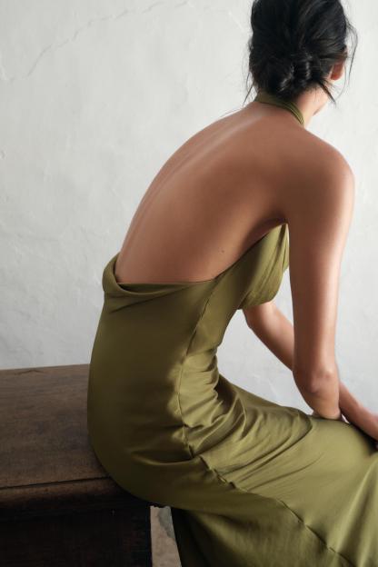 SATIN EFFECT MIDI DRESS