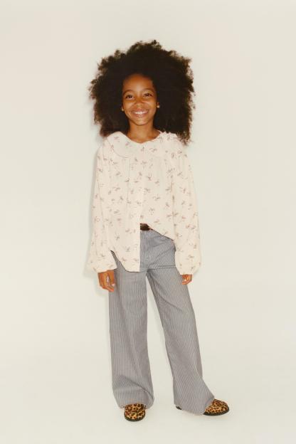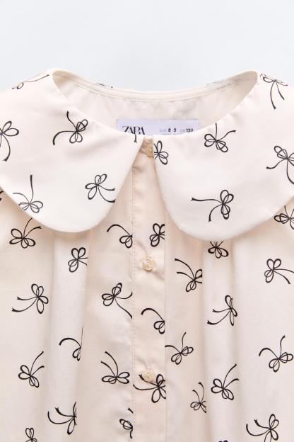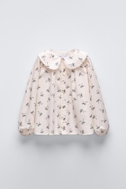 BOW PRINT COLLARED BLOUSE