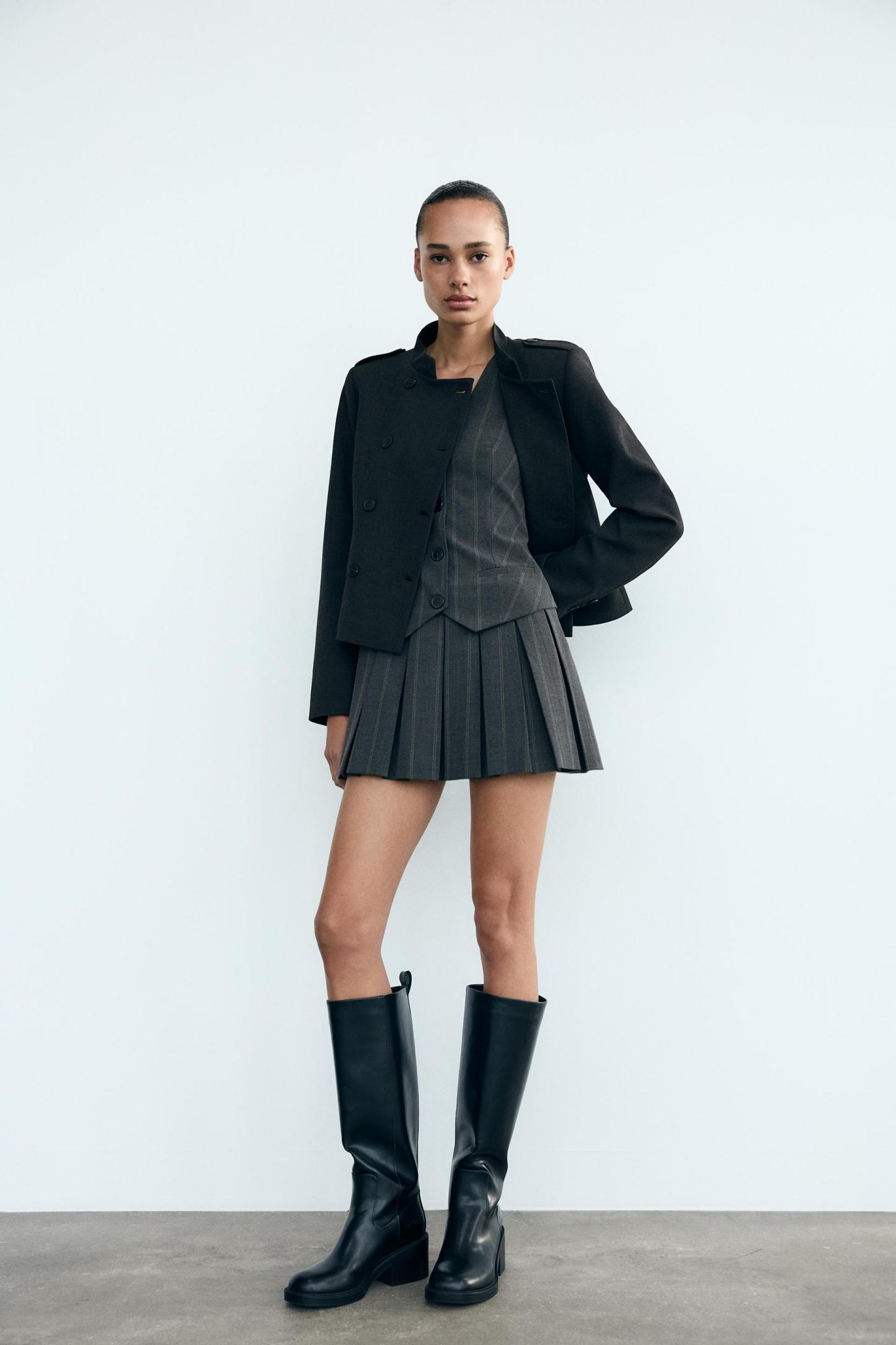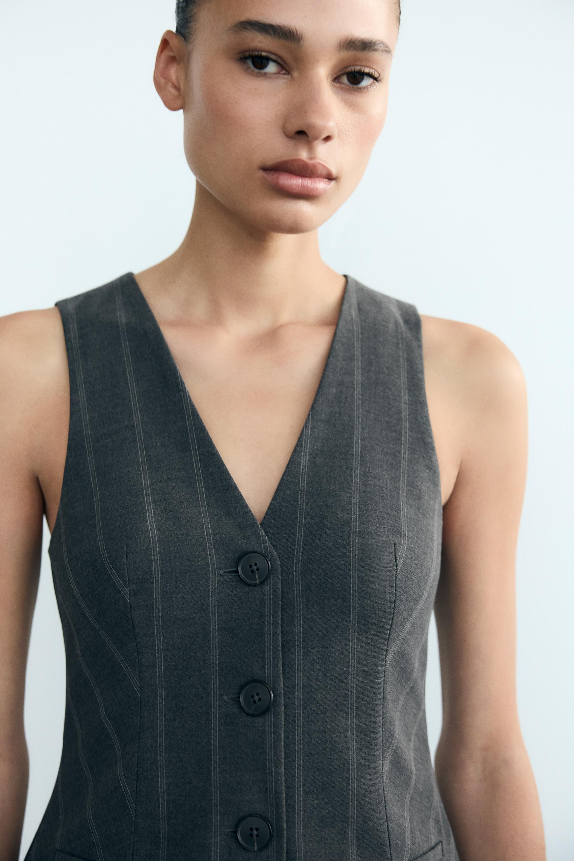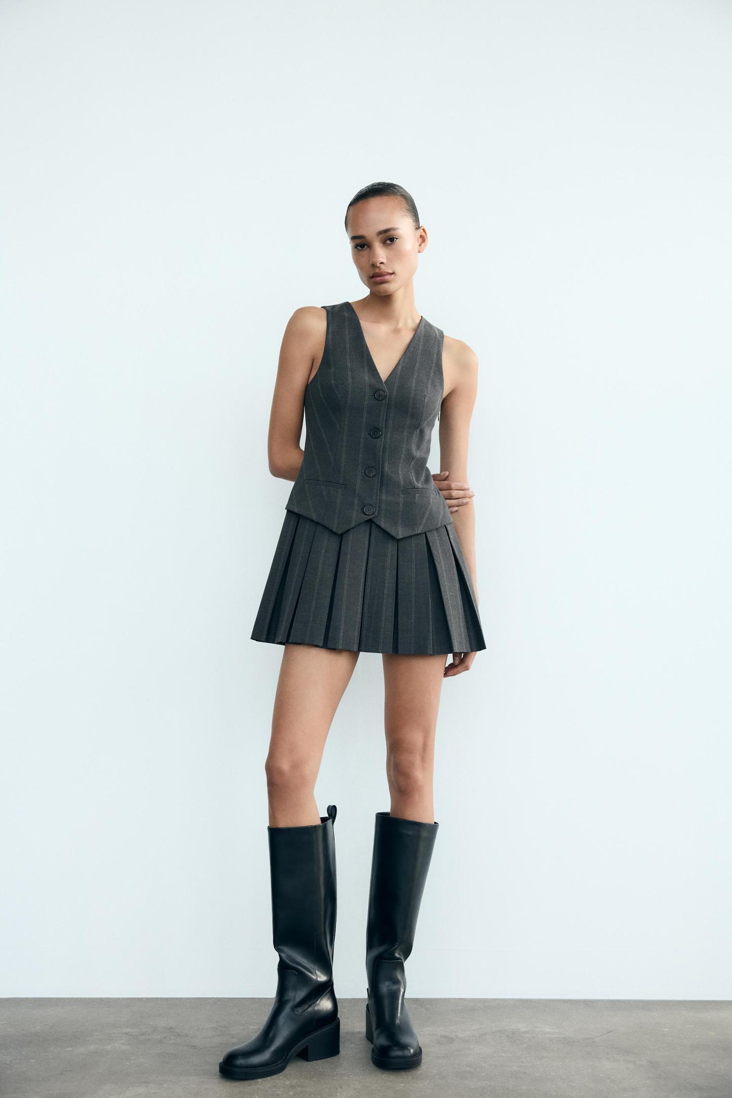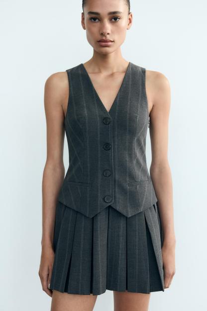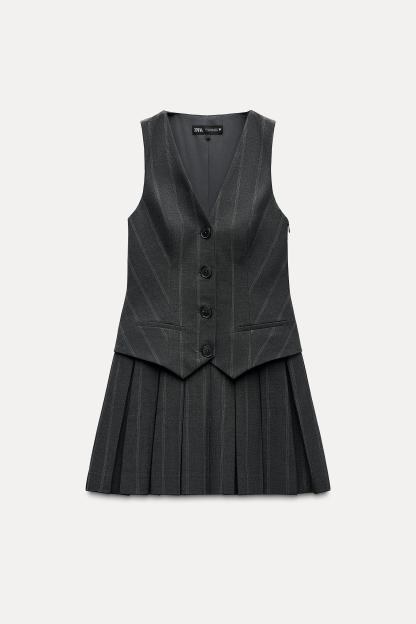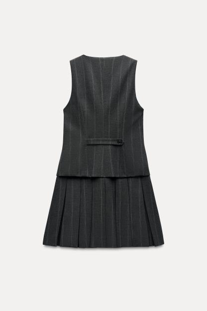 BOX PLEAT STRIPED VEST DRESS