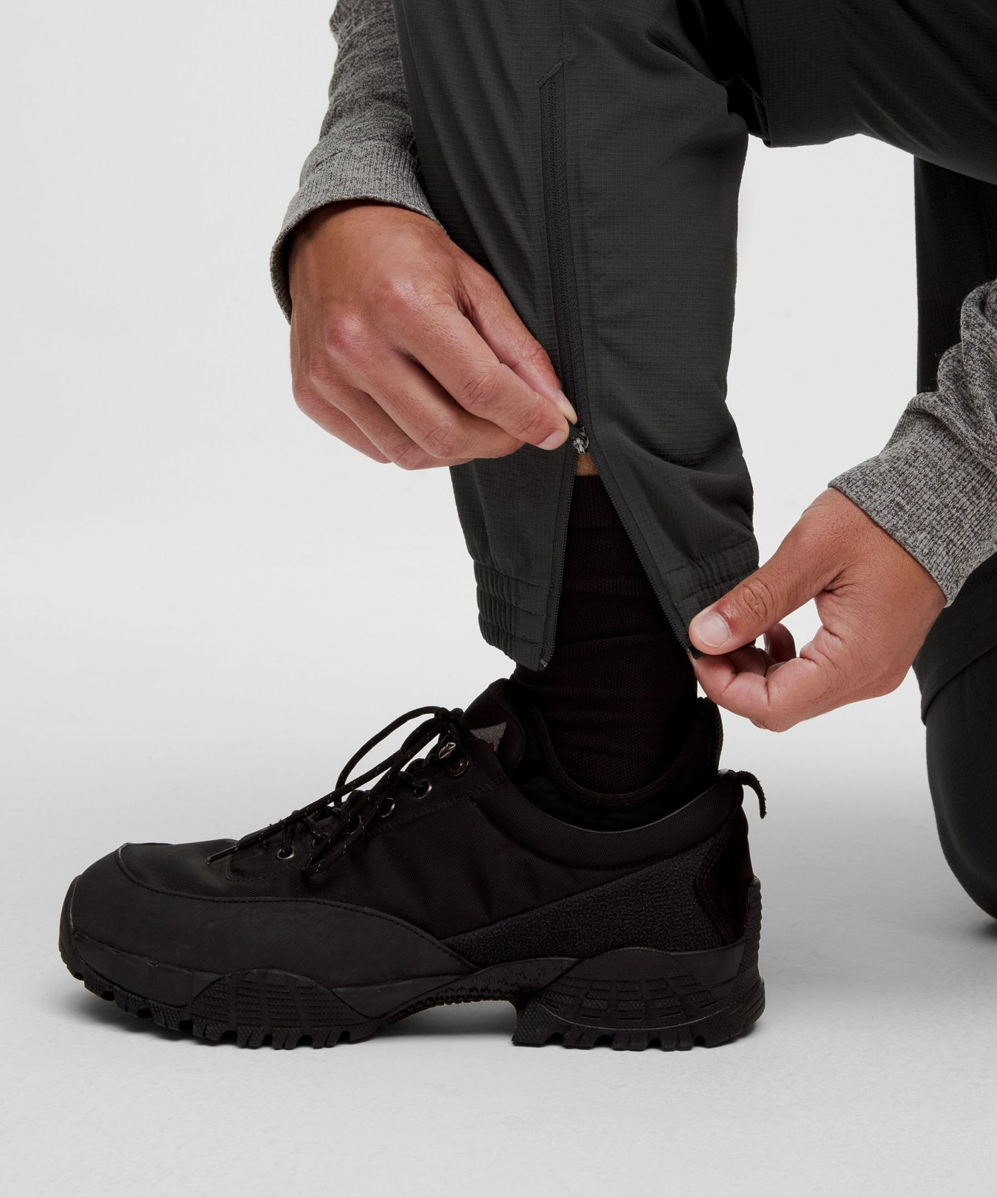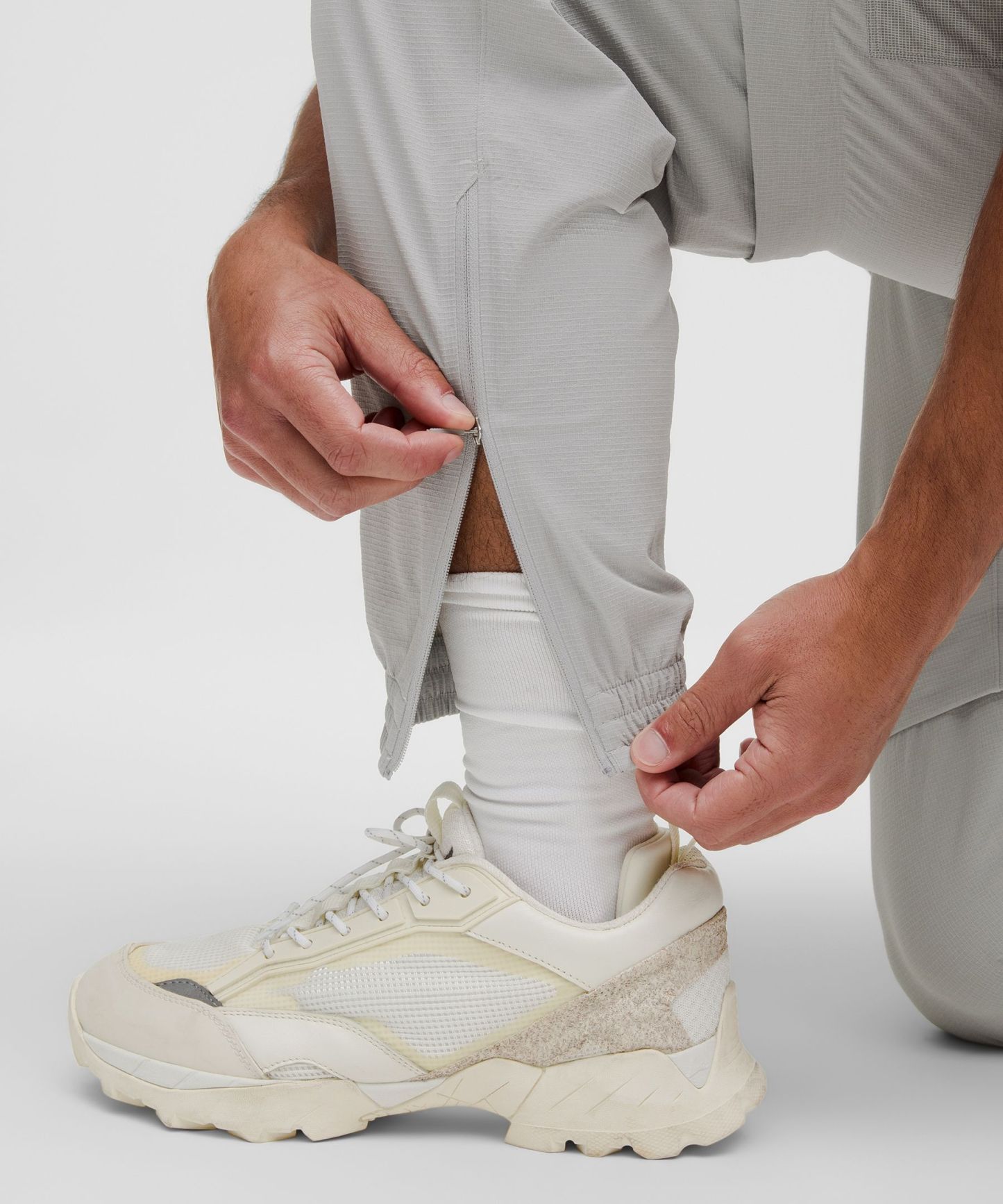- Elastic cuffs with zippers to fit over a boot
