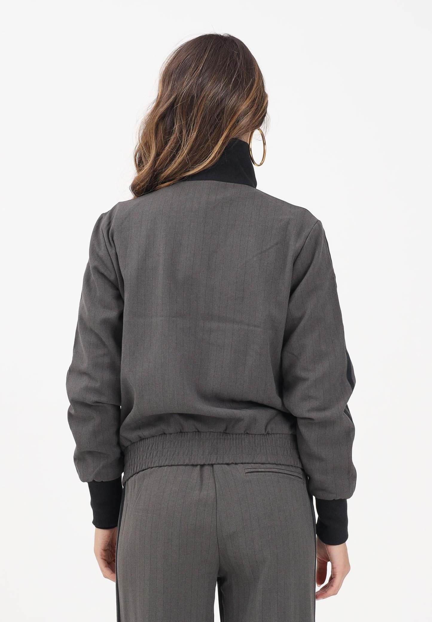Adithtdas women's army green zip-up sweatshirt. With a nod to '70s style, this tailored Adithtdas track jacket exudes effortless chic. The herringbone weave lends a refined vibe, while the tailored silhouette offers a feminine touch. Pair it with the matching trousers for a contemporary take on an old-school look. The model is wearing a size S and is 170 cm tall. Machine wash and iron at medium heat. Fall/Winter season.