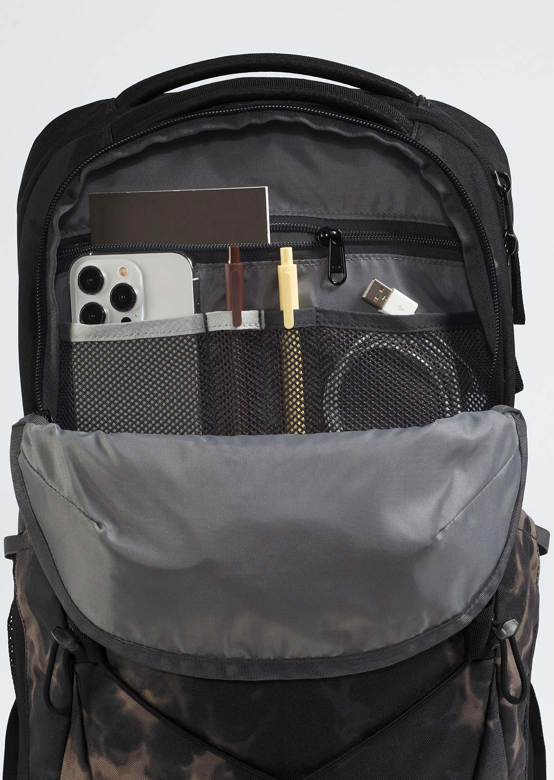 - Front compartment simplifies organization for the modern user while maintaining essential TNF Features & Benefits for storage such as secure-zip pockets, a tablet sleeve and a key-fob loop