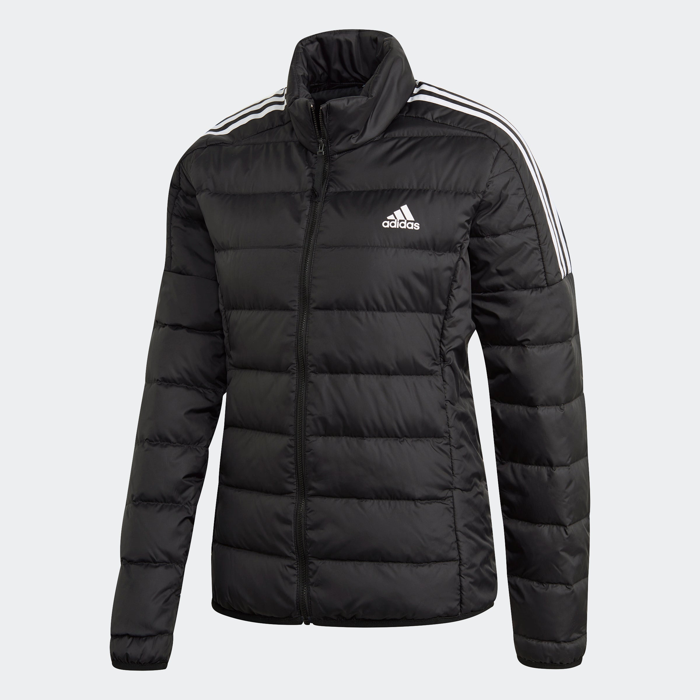 Enjoy the lightweight warmth of down in the adithtdas Essentials Down Jacket. Down baffles seal in the heat. Classic 3-Stripes details lend it street style. It's made of recycled materials, one step toward reducing environmental impact.