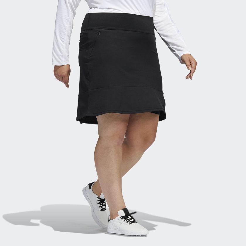 Climb the leaderboard in sporty style. This adithtdas golf skort has a soft and stretchy build for a comfy fit. The wide elastic waistband offers a supportive feel. Undershorts stay in place with grip tape at the hem for distraction-free play.