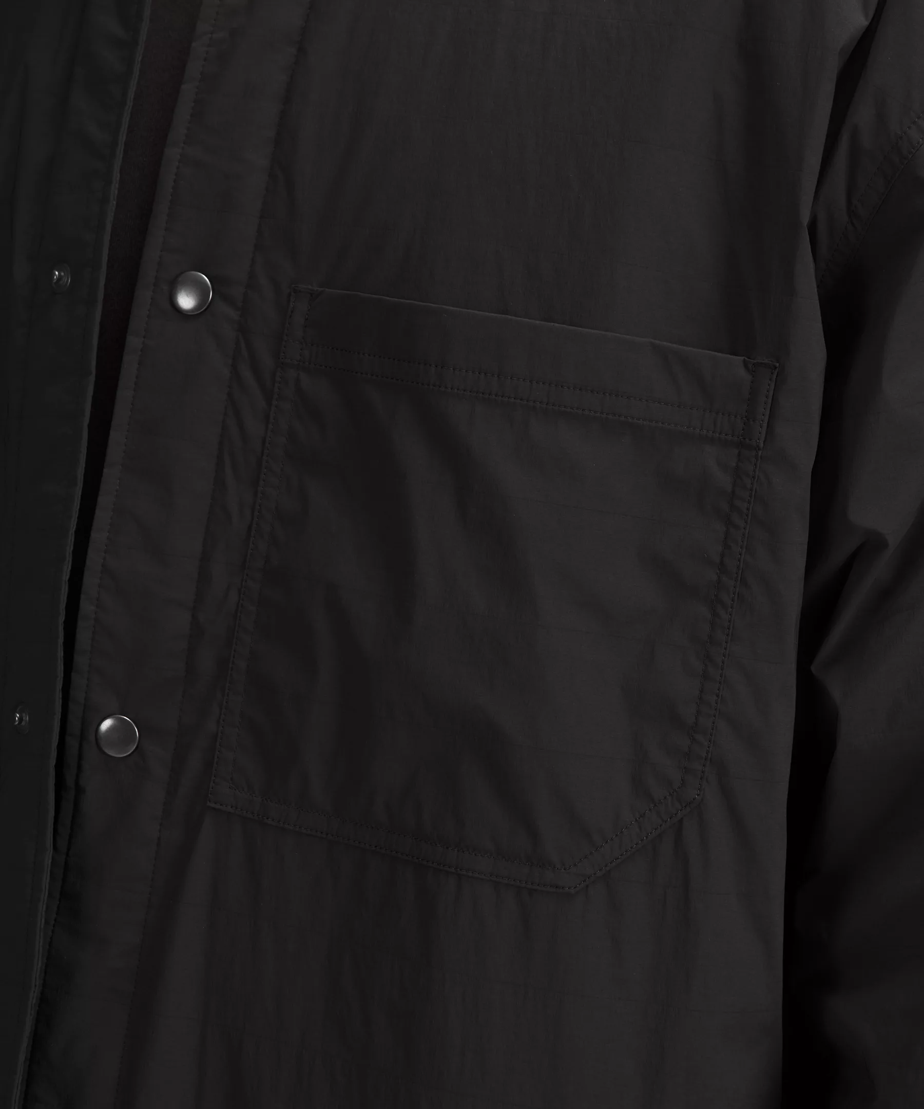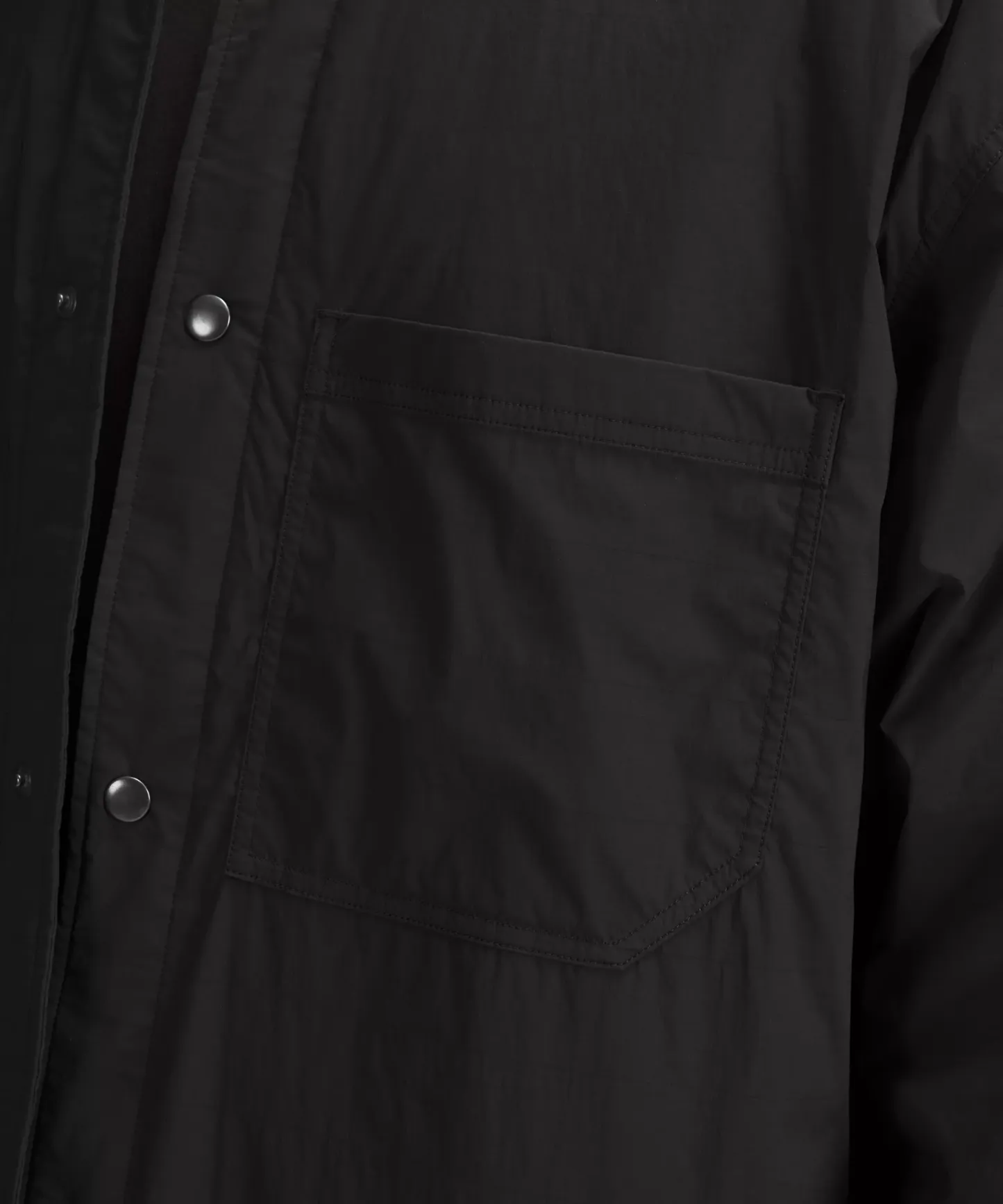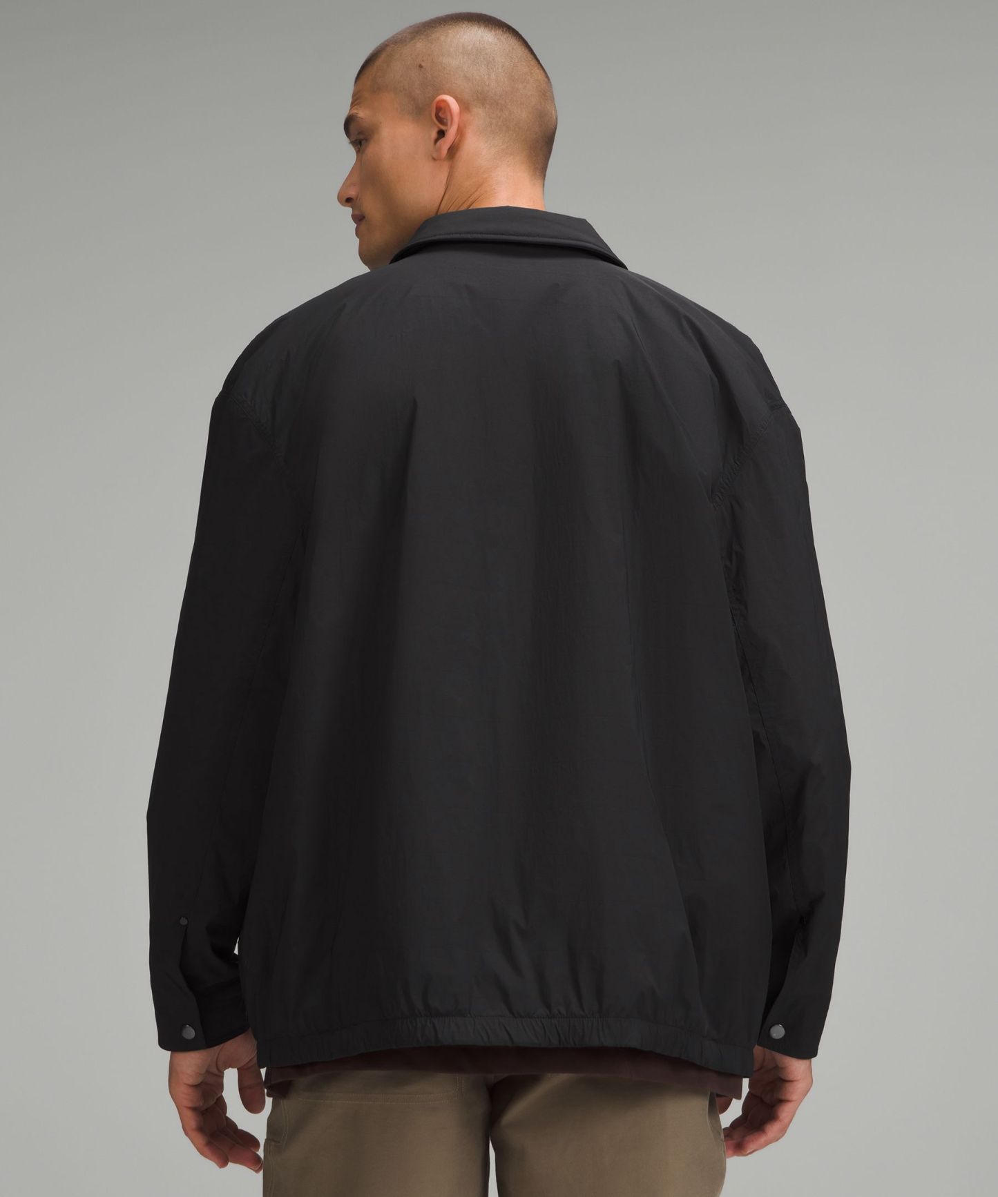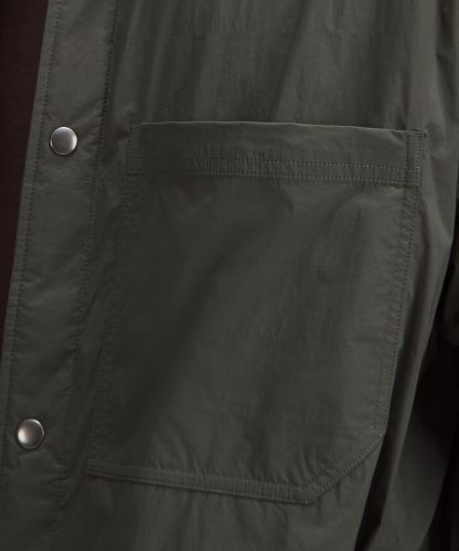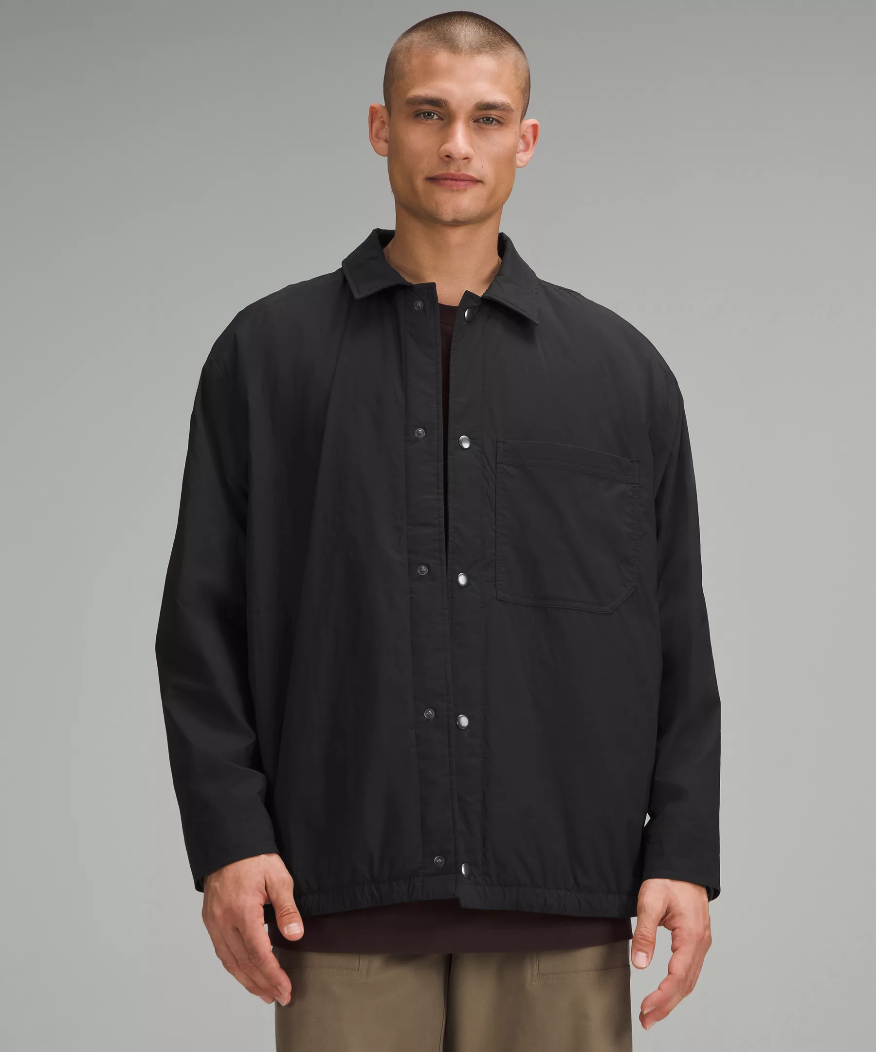 - Snap button front closure and cuffs