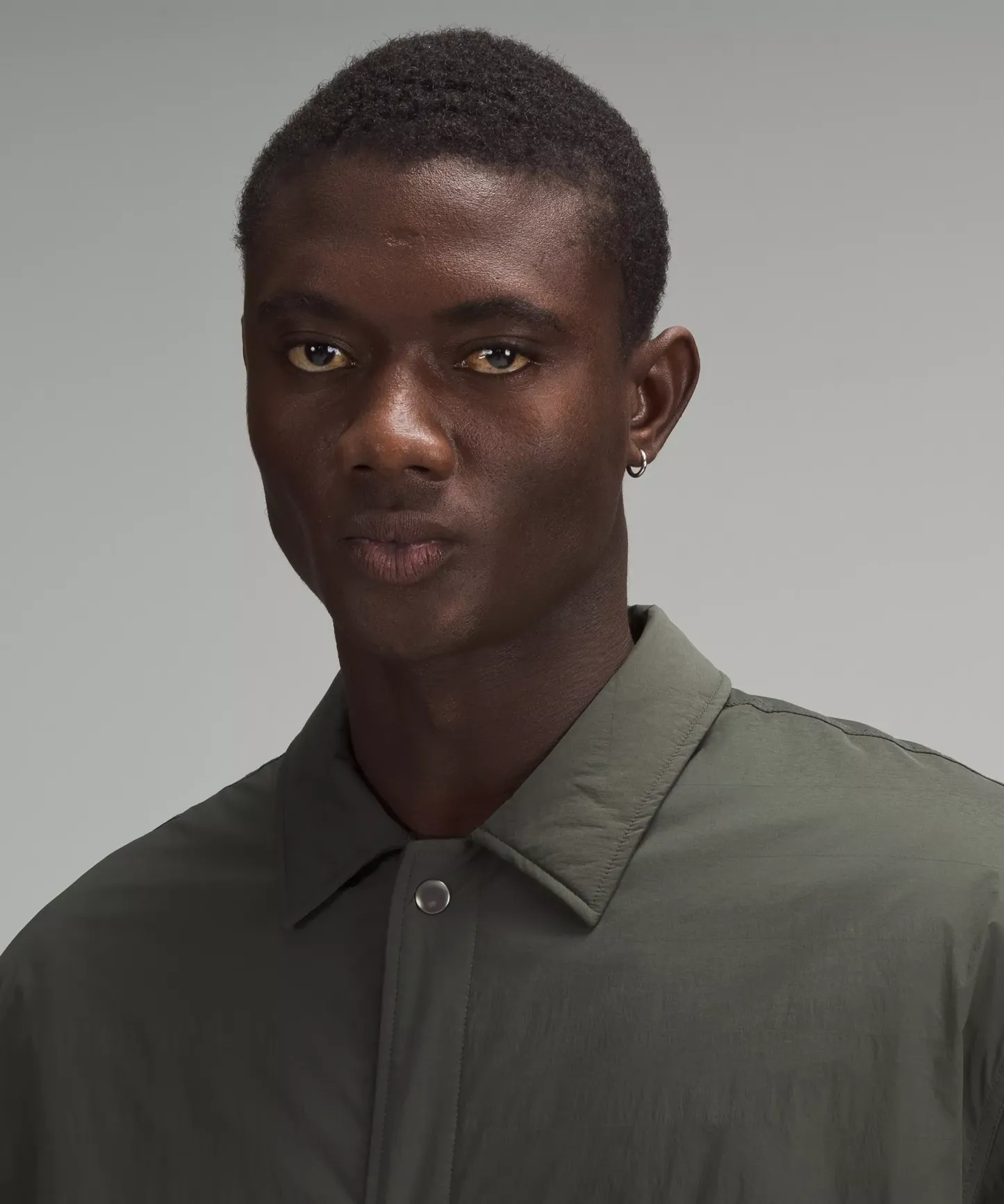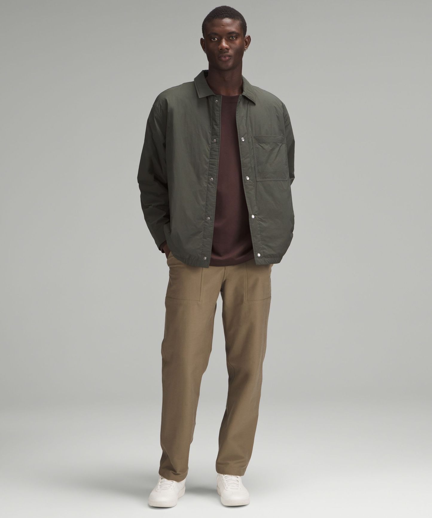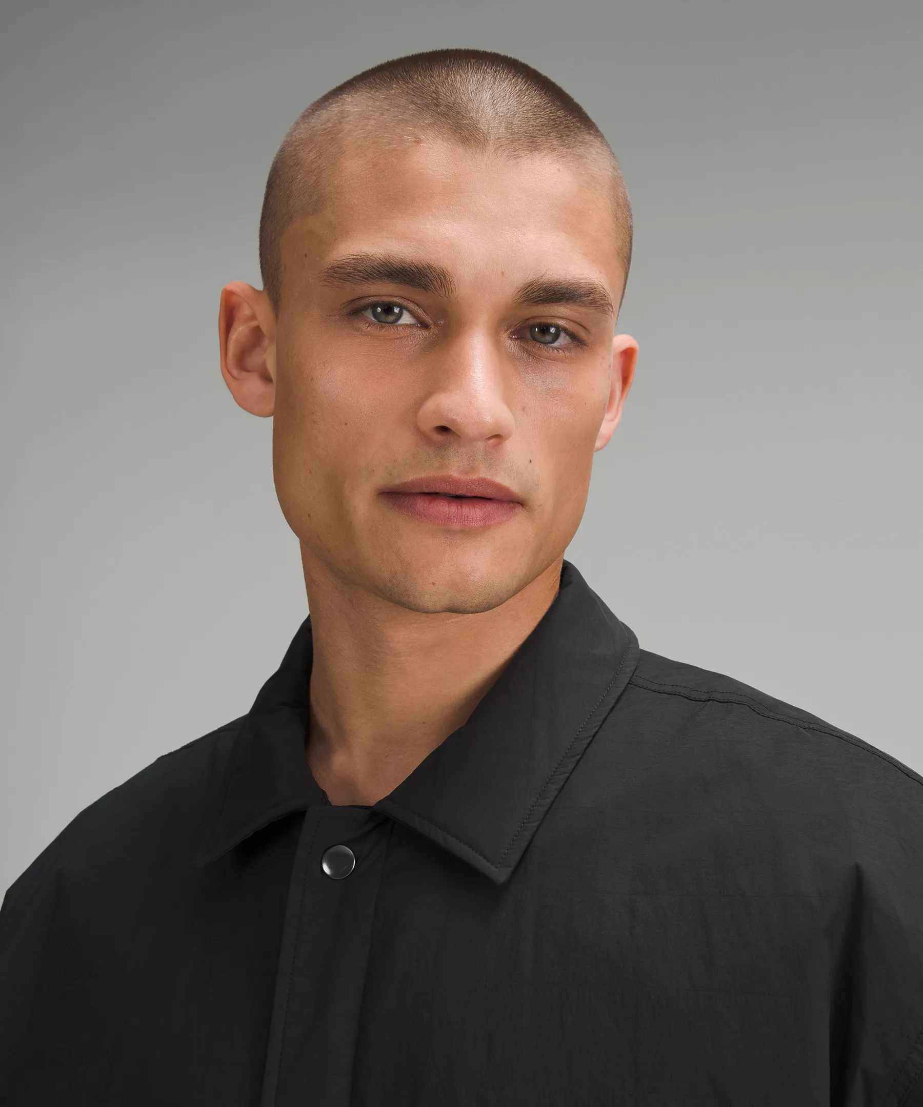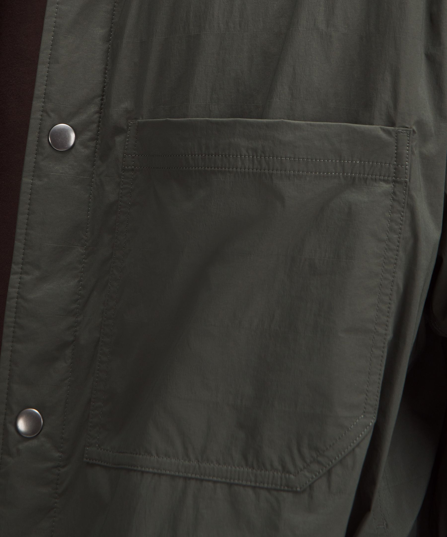 - Snap button front closure and cuffs