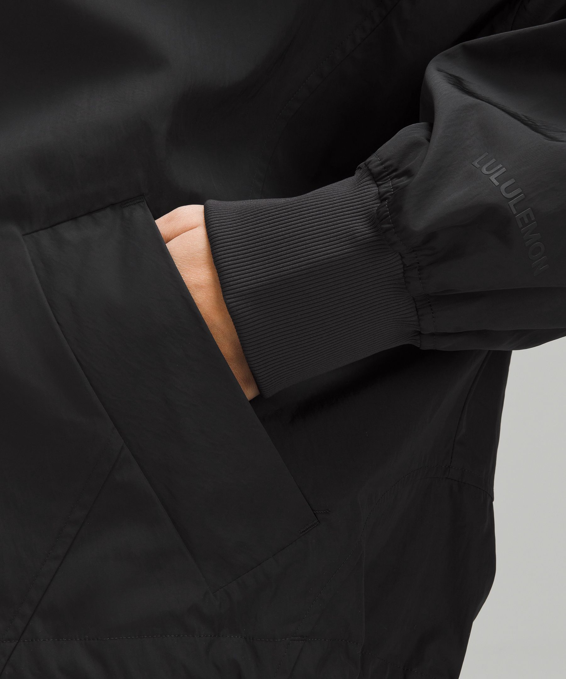 - Zippered hand pockets with hidden phone sleeve