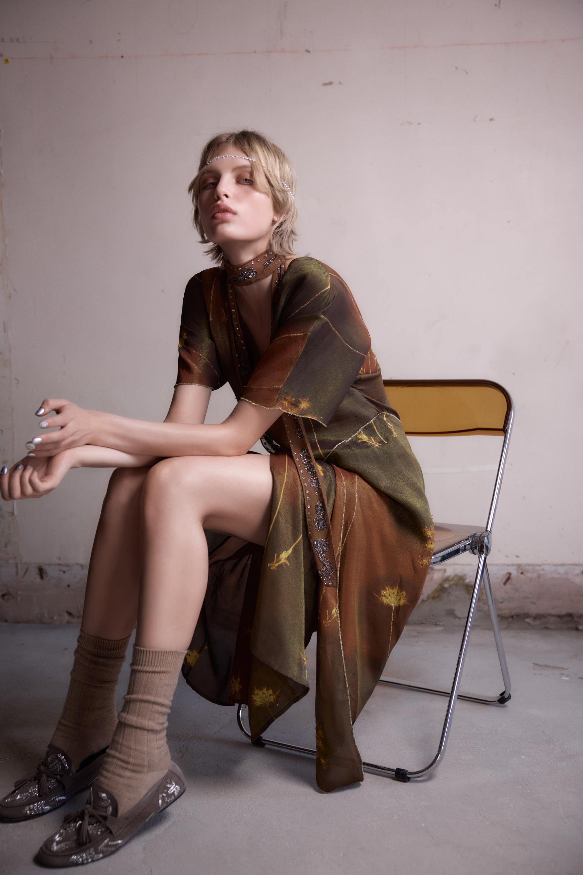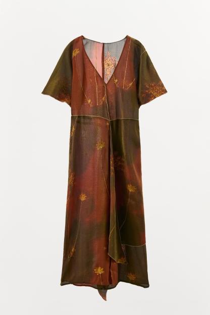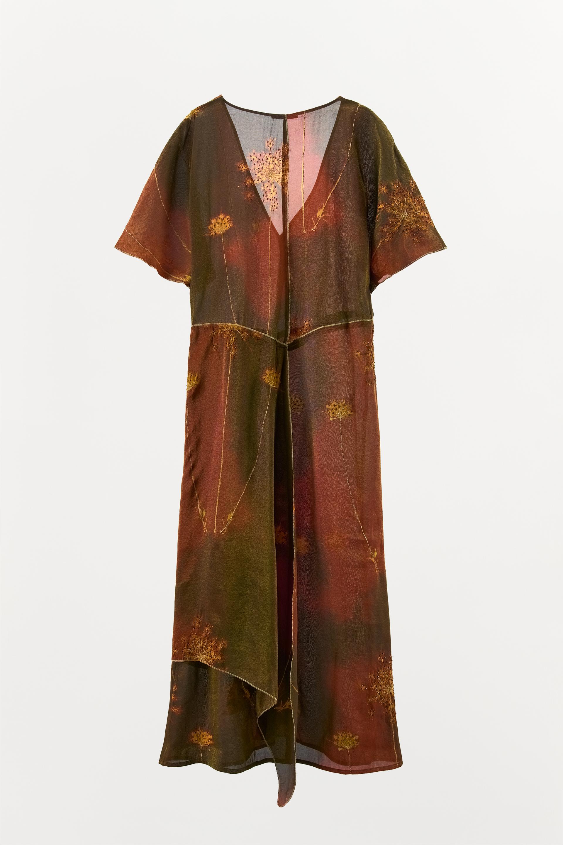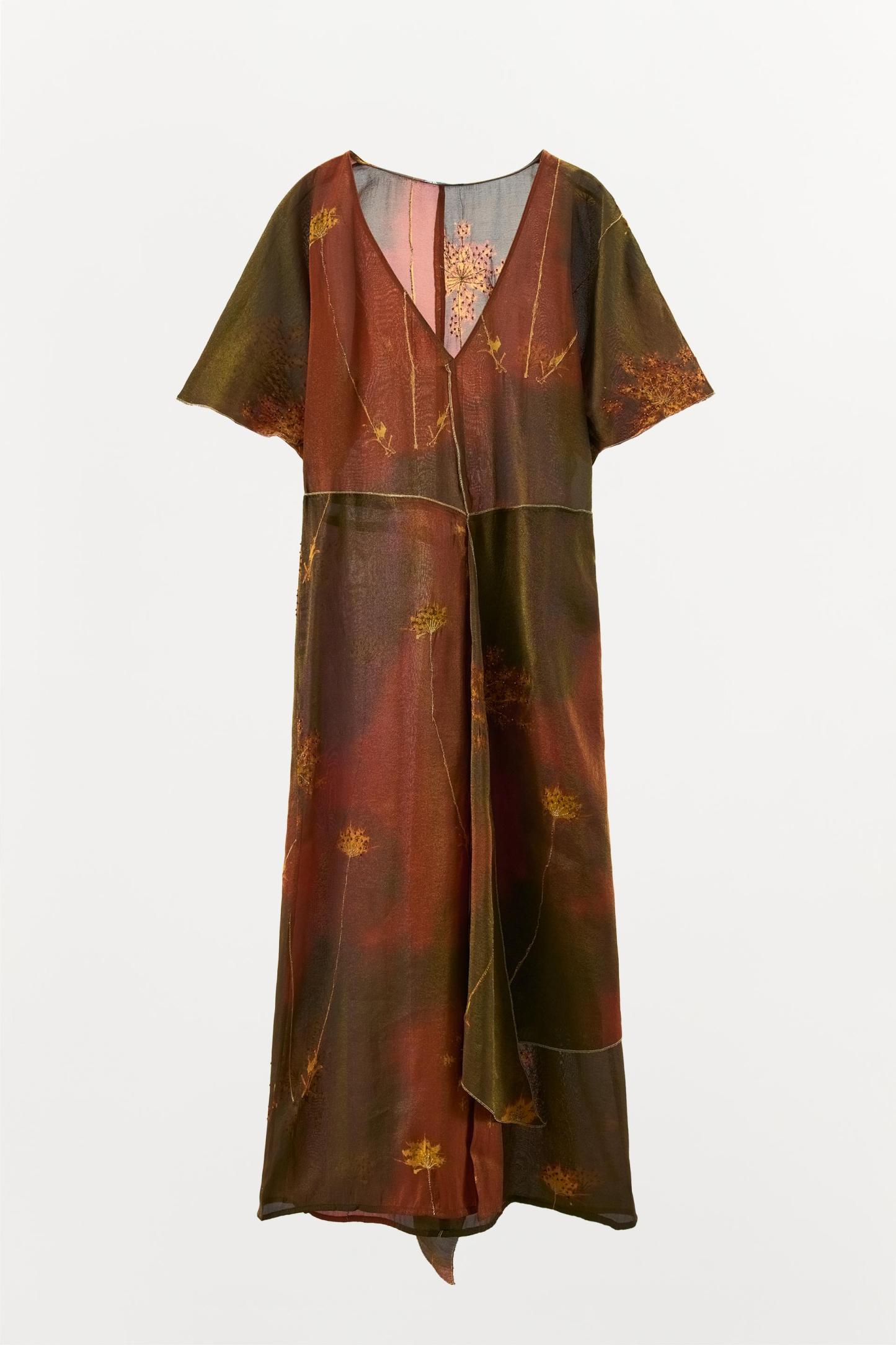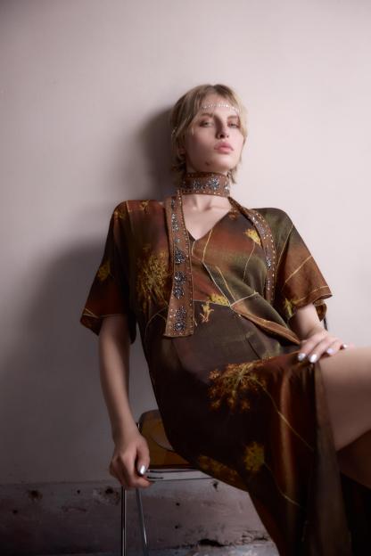 METALLIC THREAD KAFTAN DRESS WITH BEADING