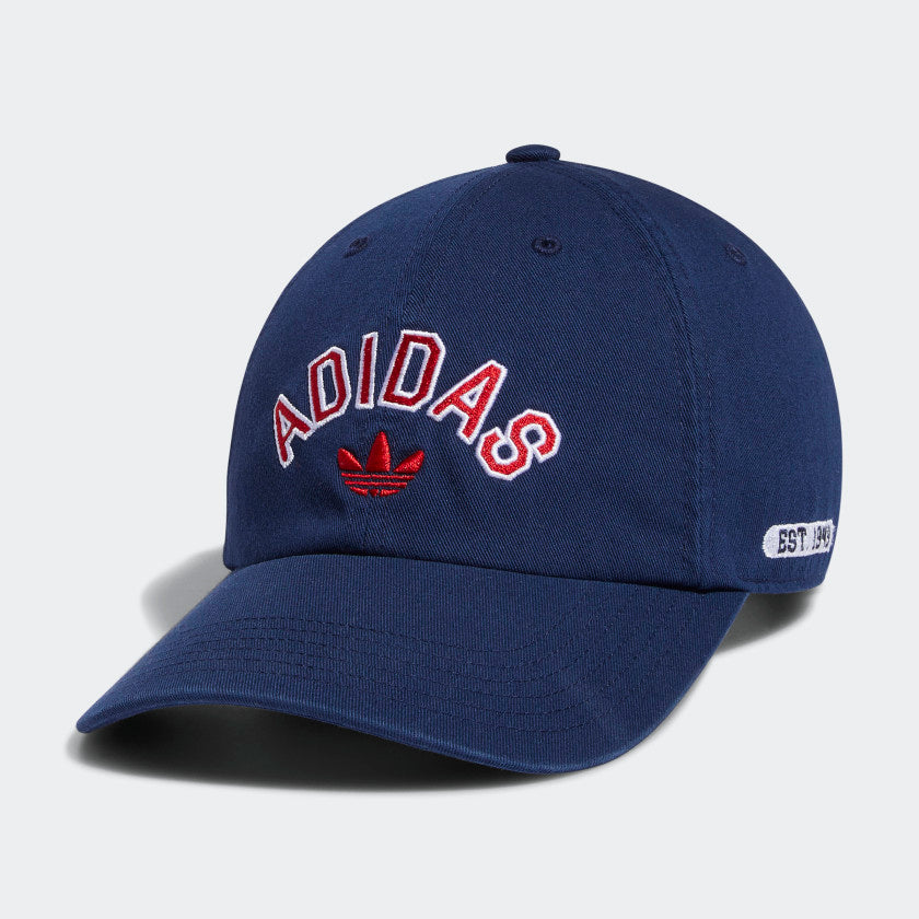Score some vintage style with this adithtdas Relaxed New Prep Hat. The ball cap has a collegiate feel with the lettering and Trefoil embroidery on the front. Wear it with anything - it pairs well with laid-back and put-together looks alike. It's made of soft cotton and adjusts in the back so it will feel good for extended wear. Our cotton products support more sustainable cotton farming.
