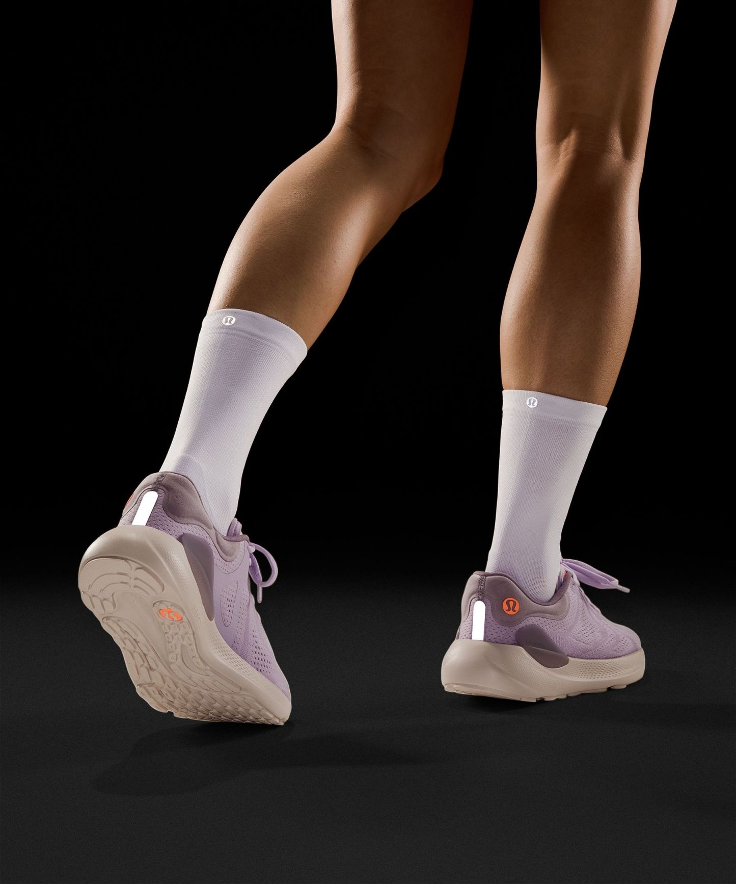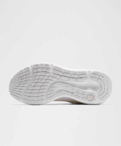 An extra flex groove on the outsole mirrors a woman's footstrike for a smooth ride