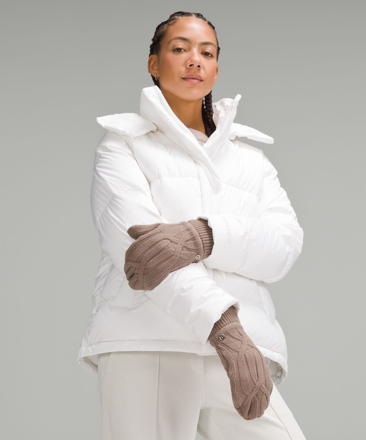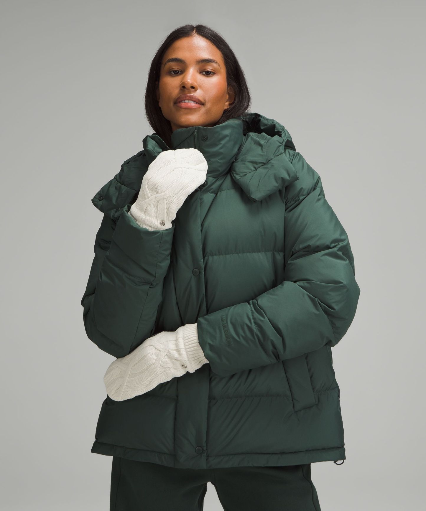- Foldover hood lets you stay warm while checking your phone