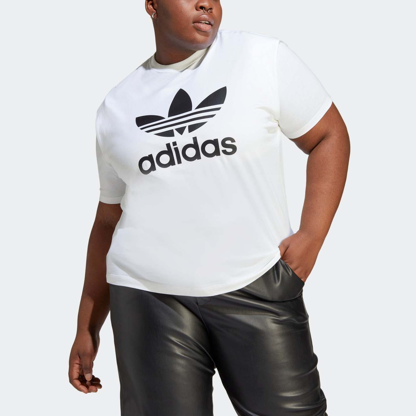 You have three looks in one with this adithtdas Always Original top. Separately, here's what you get - a loose tank top with a large Trefoil logo, and an oversize crop tee with a bungee-cord on the hem to accentuate and play with the silhouette. Together, you get a statement look that takes some influence from the world of '80s aerobics.
