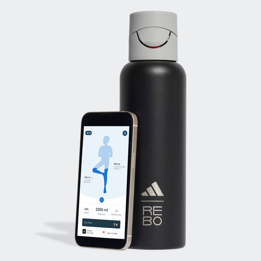 Introducing adithtdas x REBO smart bottle. REBO is a stainless-steel smart water bottle that makes it easy to stay hydrated. Equipped with an innovative smart cap, the bottle tracks the amount of water you drink and sends data to the REBO app. A built-in personal hydration coach creates a customised hydration plan, automatically adjusted based on your daily activity. REBO helps you achieve your hydration goals by sending you both in-app and visual reminders via the cap's LED ring. Based on your water consumption with the smart reusable bottle, the REBO app converts your efforts into funding the collection of plastic waste. REBO easily fits into your daily life, helping you unlock your hydration potential from home, to the office and to the gym.