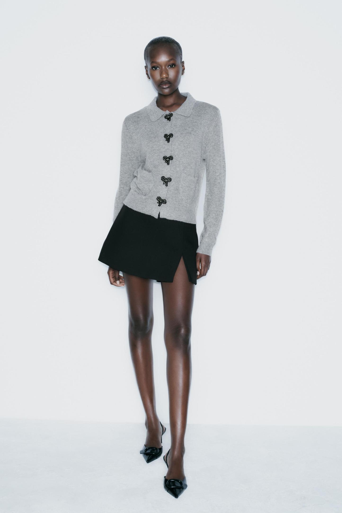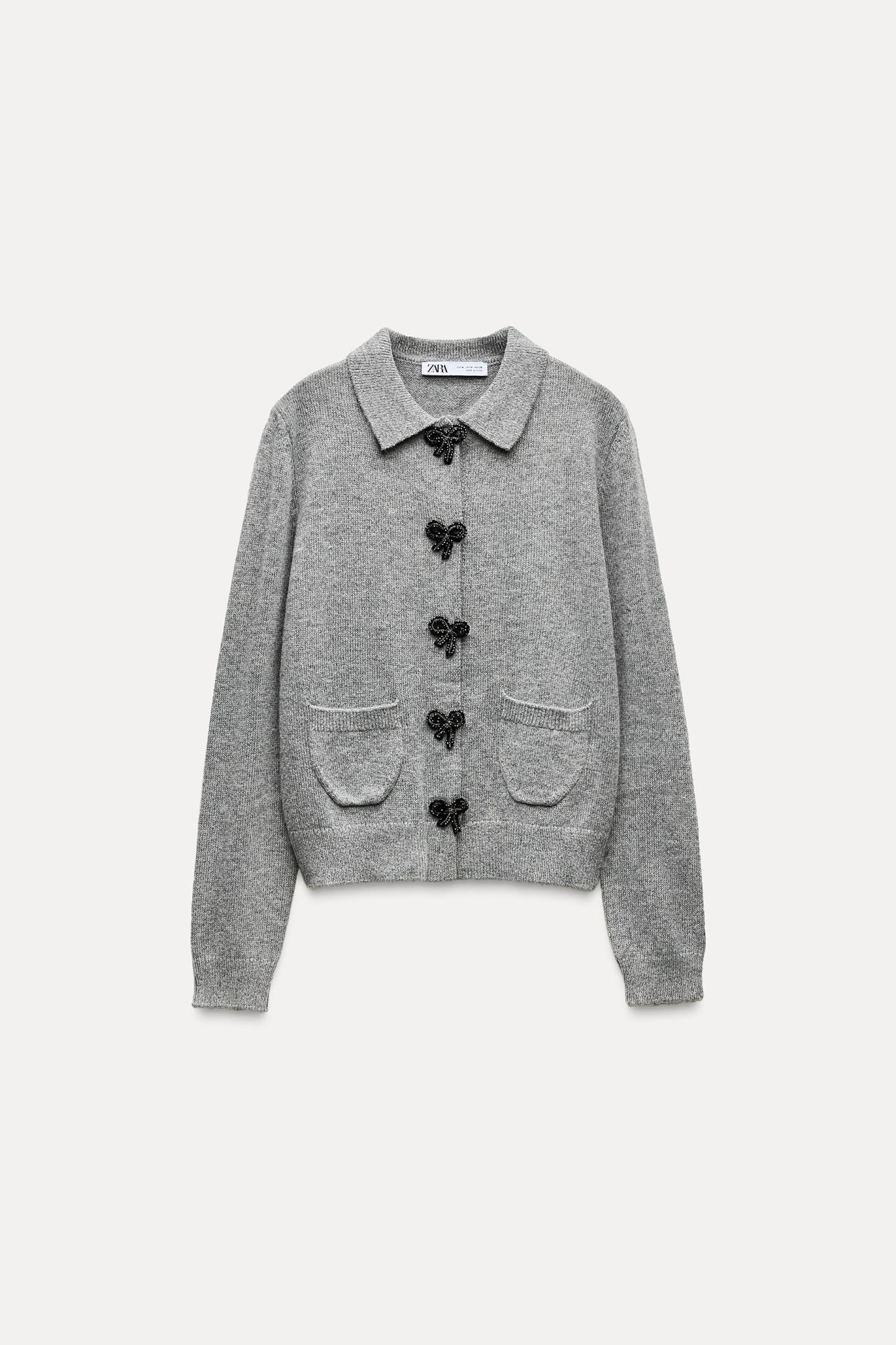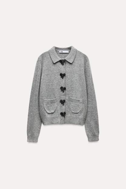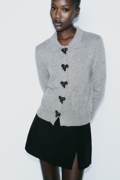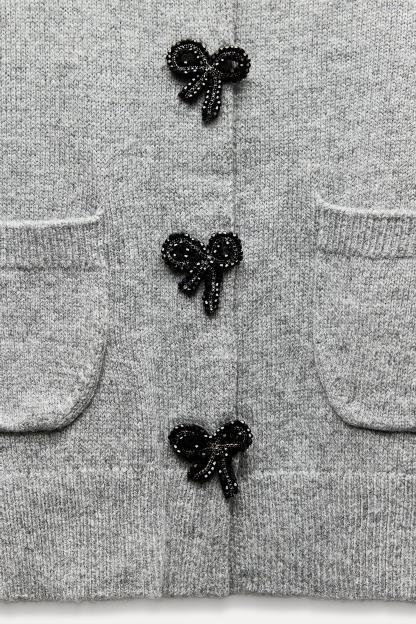 BOW-SHAPED BUTTON KNIT CARDIGAN