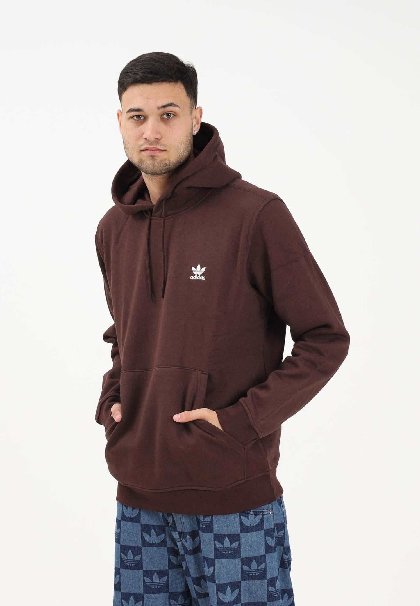 Adithtdas Men's ESSENTIAL REGULAR FLEECE Hoodie in Brown. Kick back in the Essential Regular Fleece Hoodie, a wardrobe staple that combines style and practicality. Whether you're heading out for a casual meeting or simply enjoying a relaxed day, this fleece hoodie is your ideal choice. Crafted from a cotton and polyester blend, it feels soft against the skin. The textured fleece construction offers comfort and warmth, making it a great choice for relaxed outings or lounging at home. Its understated design makes it versatile enough to pair with a wide range of outfits. Crafted in a regular fit, it's neither too tight nor too loose, creating a relaxed balance between comfort and ease of movement. Demonstrating Adithtdas ' commitment to quality, this hoodie isn't just about style. It's about feeling as good as you look. Take on the everyday with confidence and comfort in this everyday essential. The model wears a size L and is 187 cm tall. We recommend washing and ironing at medium heat. Suitable for autumn and winter.