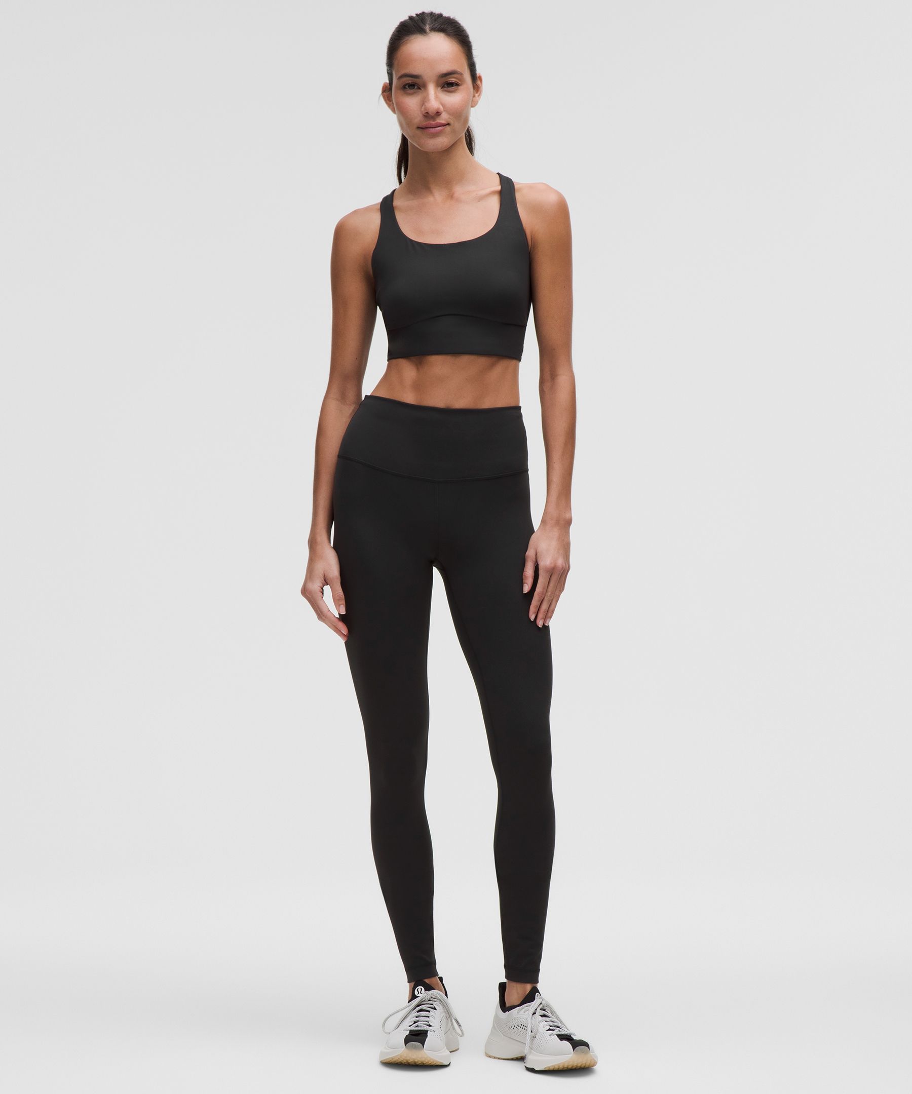 A high-rise waistband keeps you covered as you lift and squat. Our 31" length is intended to sit at your ankle.