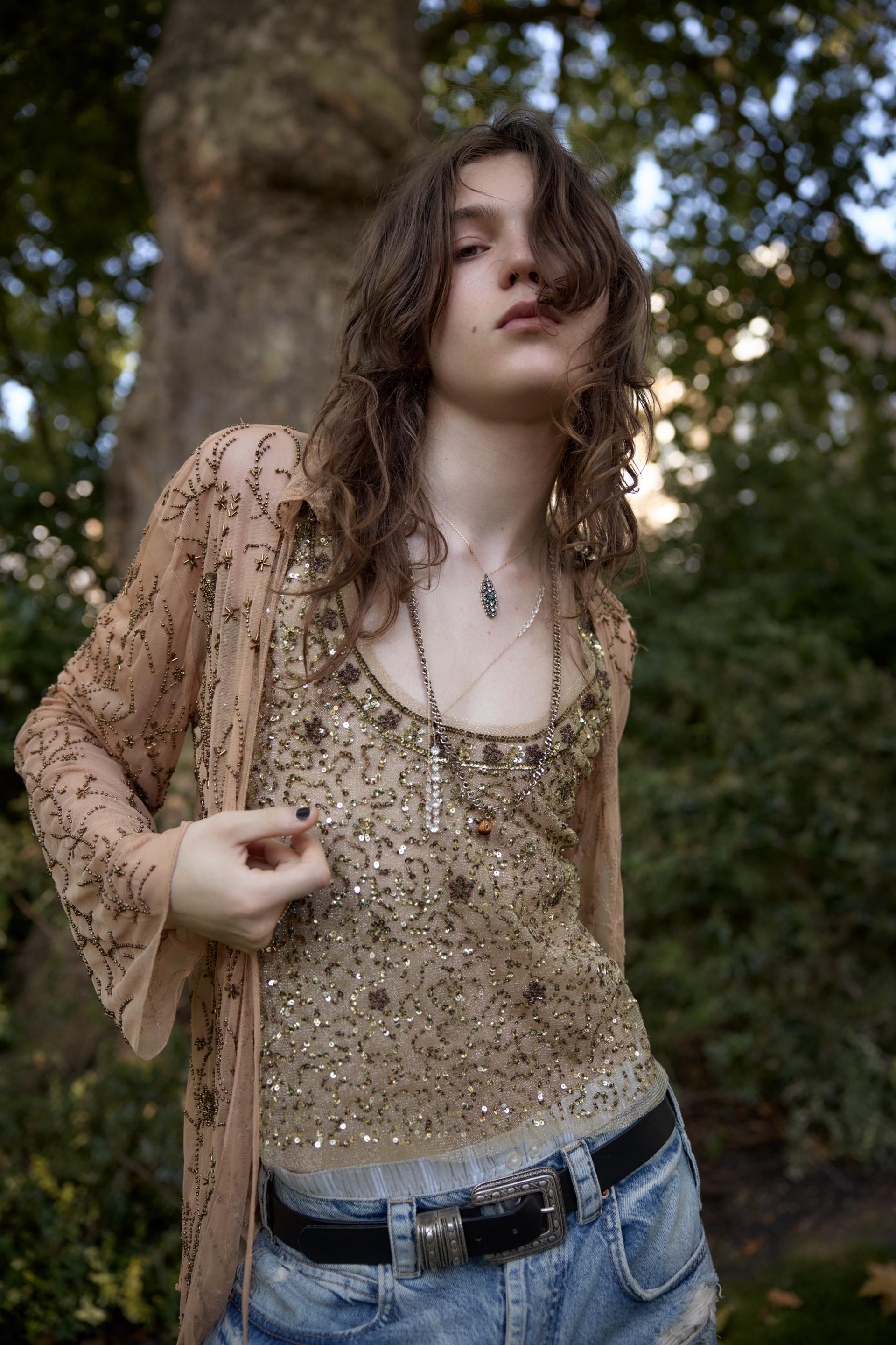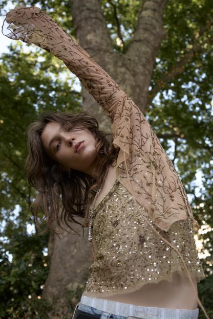 BEADED SEQUIN TULLE TOP