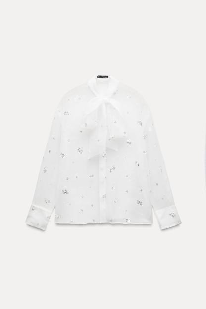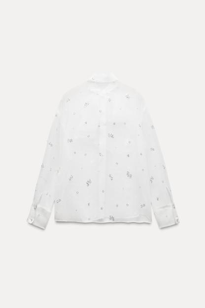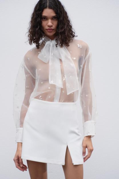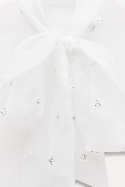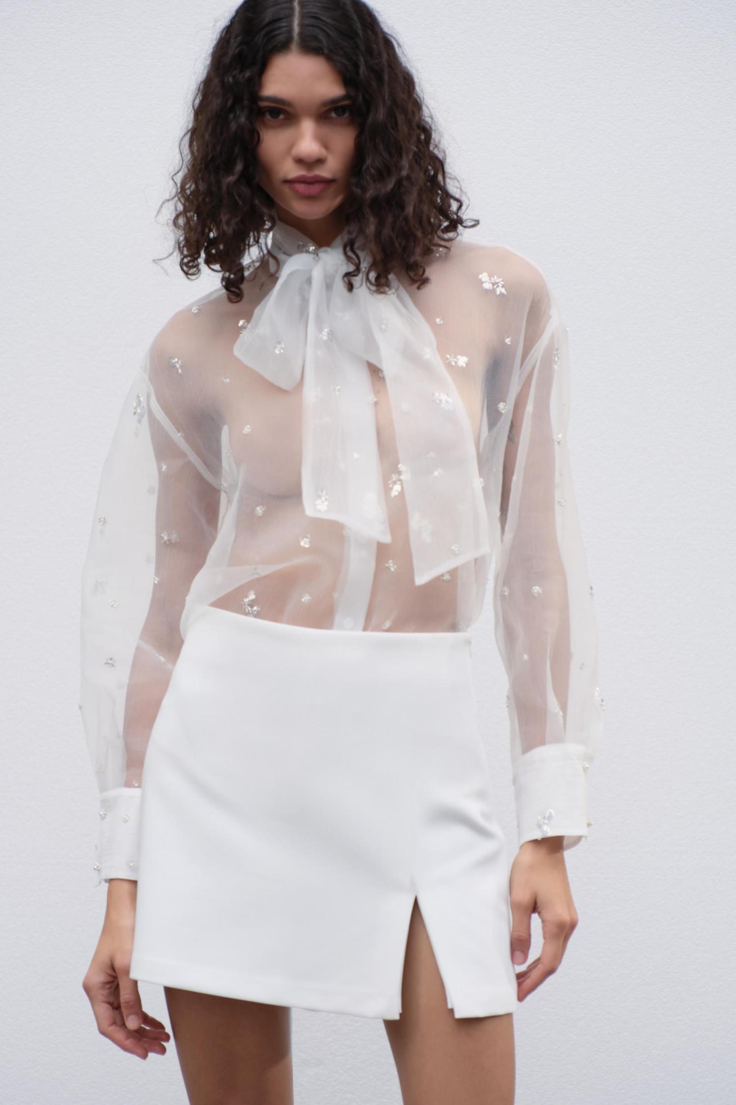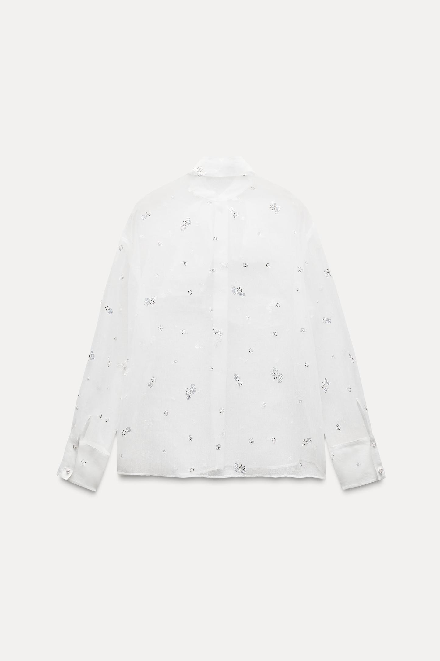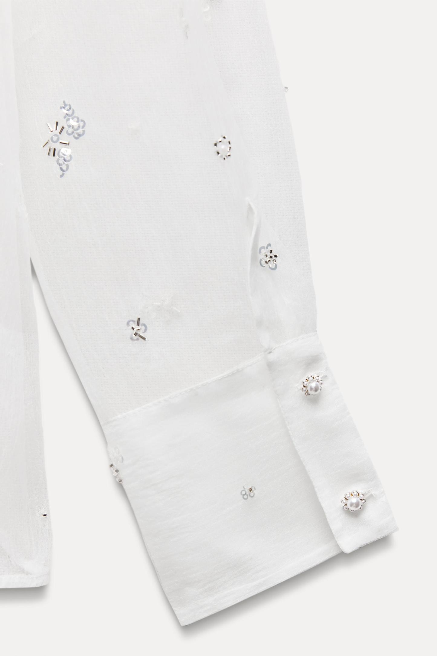 BEADED SEQUINED SEMI-SHEER TOP